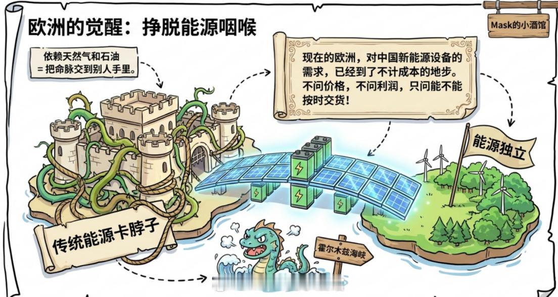 但很多人不知道,这场能源危机,最大的赢家不只是石油化工,还有我们中国的新能源产业链。欧洲这些年被传统能源卡脖子卡怕了,霍尔木兹海峡一紧张,他们比谁都清楚,依赖石油、天然气,就是把能源命脉交到别人手里。想要能源安全,唯一的出路就是加快新能源替代。现在的欧洲,对中国新能源设备的需求,已经到了不计成本的地步。不问价格,不问利润,只问能不能按时交货。我们的新能源企业,就这样吃下了这波实打实的能源安全红利。