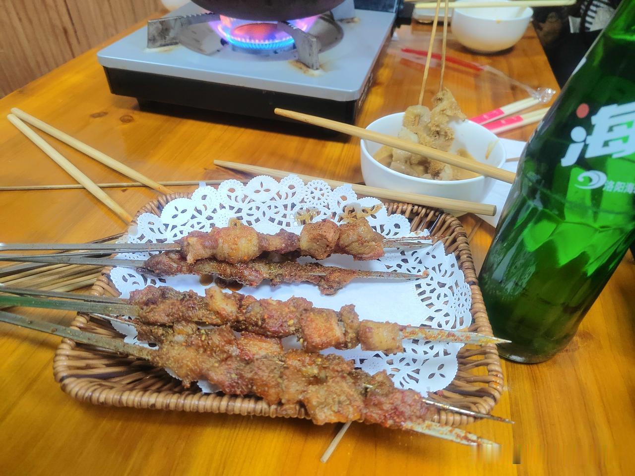 进去后,老板果然是一个老头,挺也热情的接待了我,随后拿出菜单,我也没敢多点,心里是打算试试,如果不好吃,就及时止损开溜,所以随便点了点肉串和涮牛肚,点了一个麻辣锅底,当老板把锅底端上来后,我一看是当年老城青年宫用的老式涮牛肚砂锅,我就笃定其味道不会错,随着锅汤沸腾,第一股香味浓郁四起时,就更加确定我的看法,再进一步第一串牛肚入口那一瞬间,感觉真的来了,只能用一句话形容“久违的感觉回来了”。
