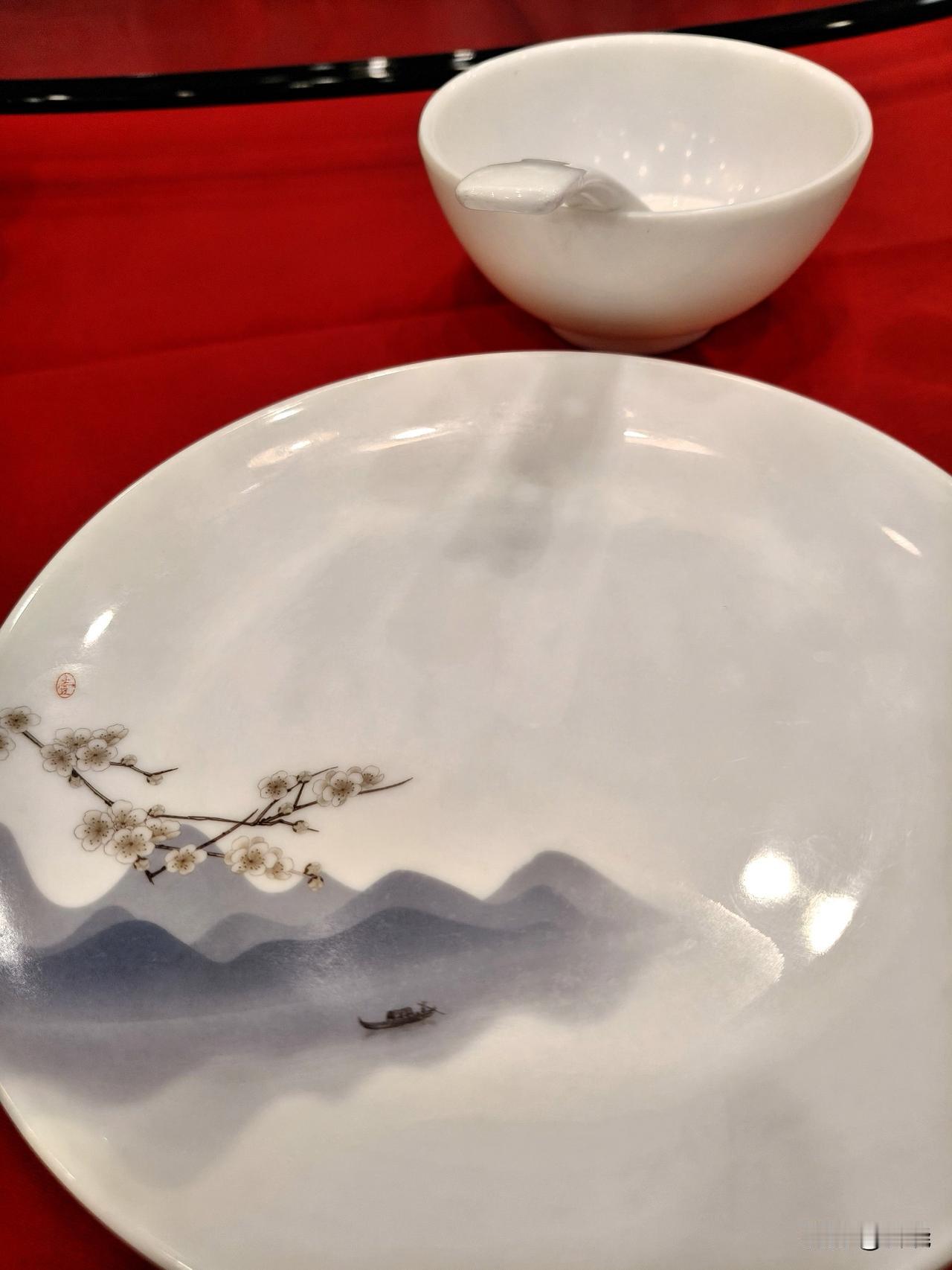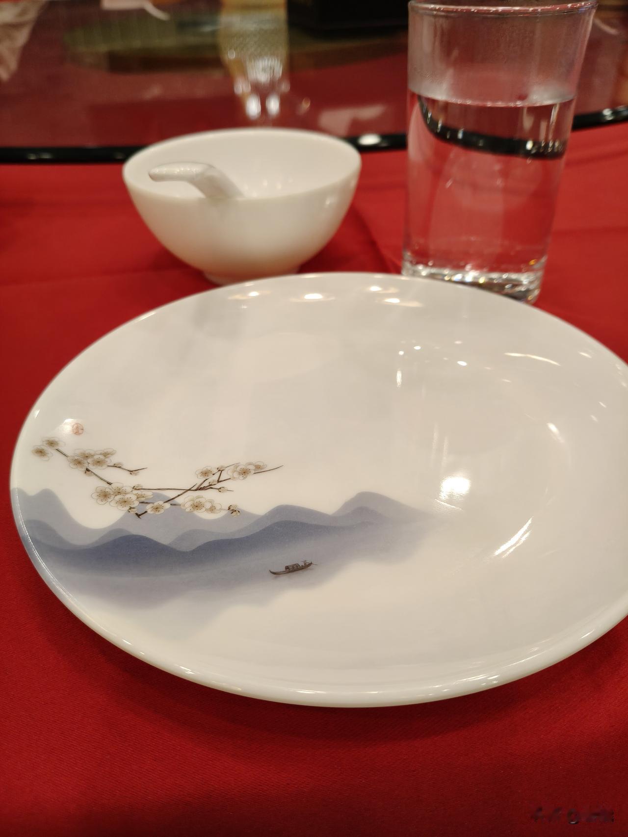 水墨丹青落瓷盘 今天与几位朋友前往郊区的全聚德就餐。 面前的瓷碟令我眼前为之一亮