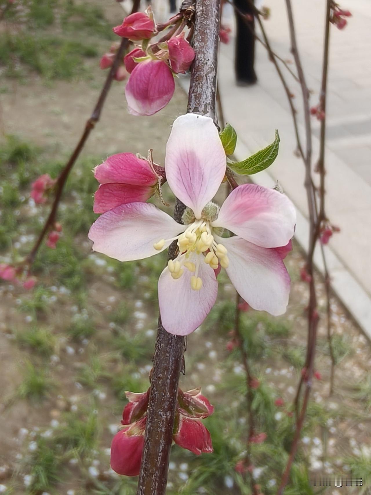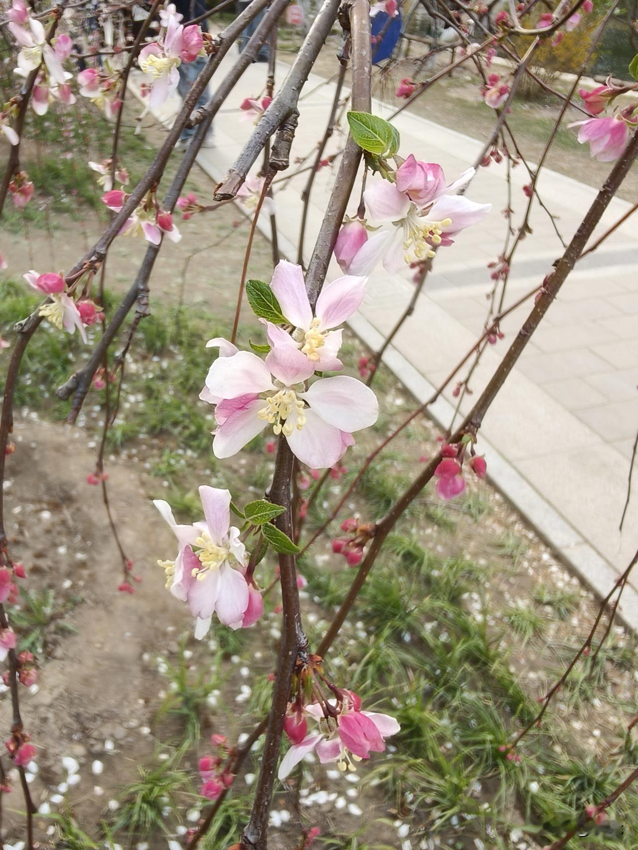 带着小朋友来赏花的人,看到路易莎海棠无不惊叹:这个花真美,快来拍个照!