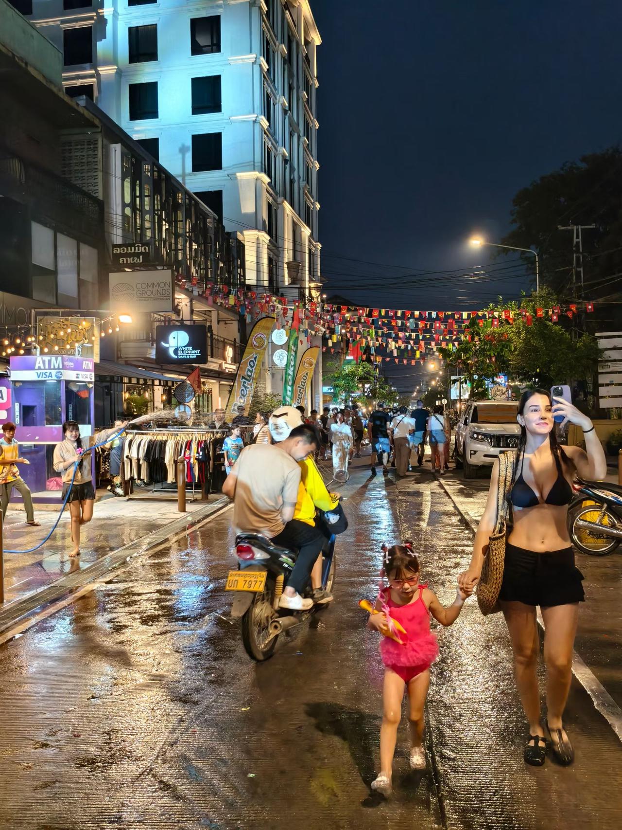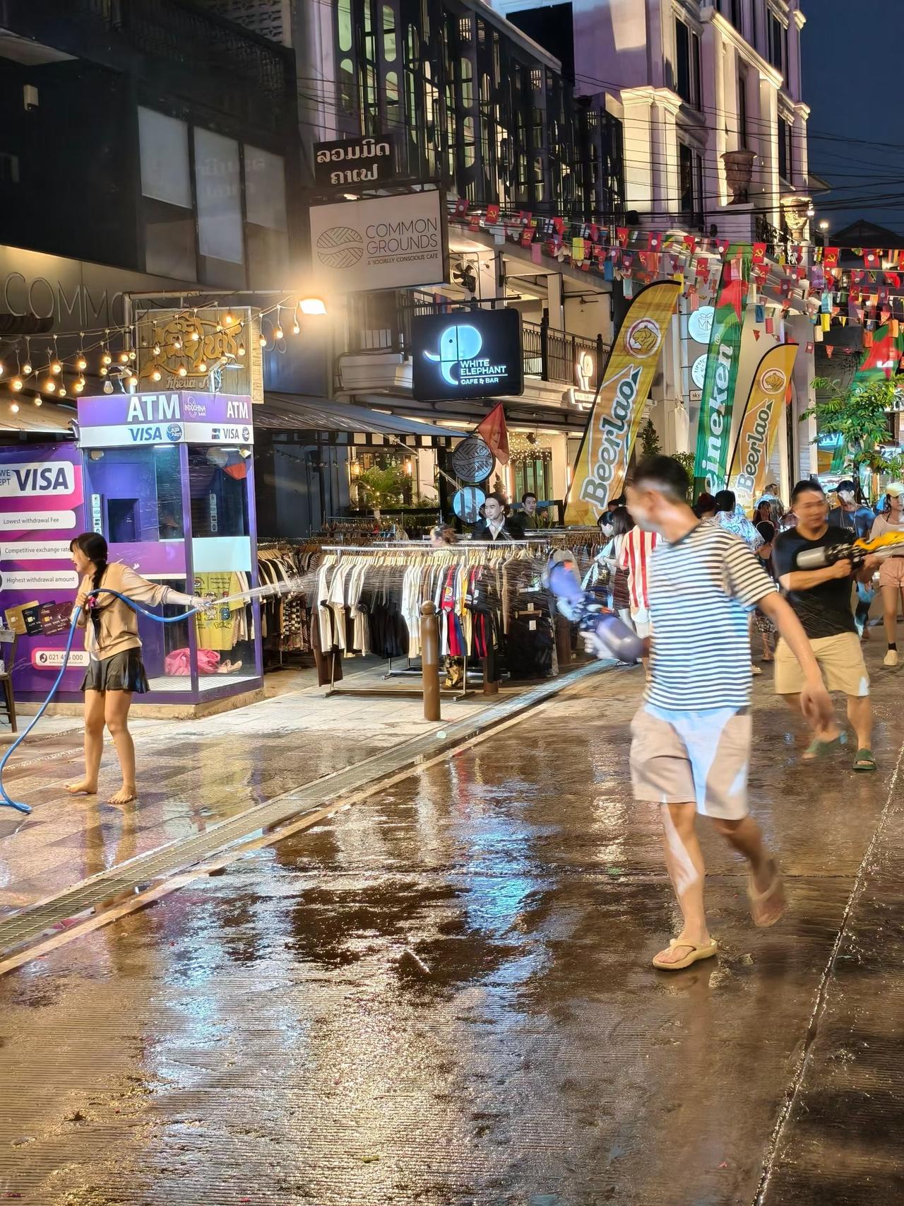 老挝琅勃拉邦,各国游客纷纷涌向湄公河边,泼水节氛围渐入佳境,已成一片欢乐的海洋[