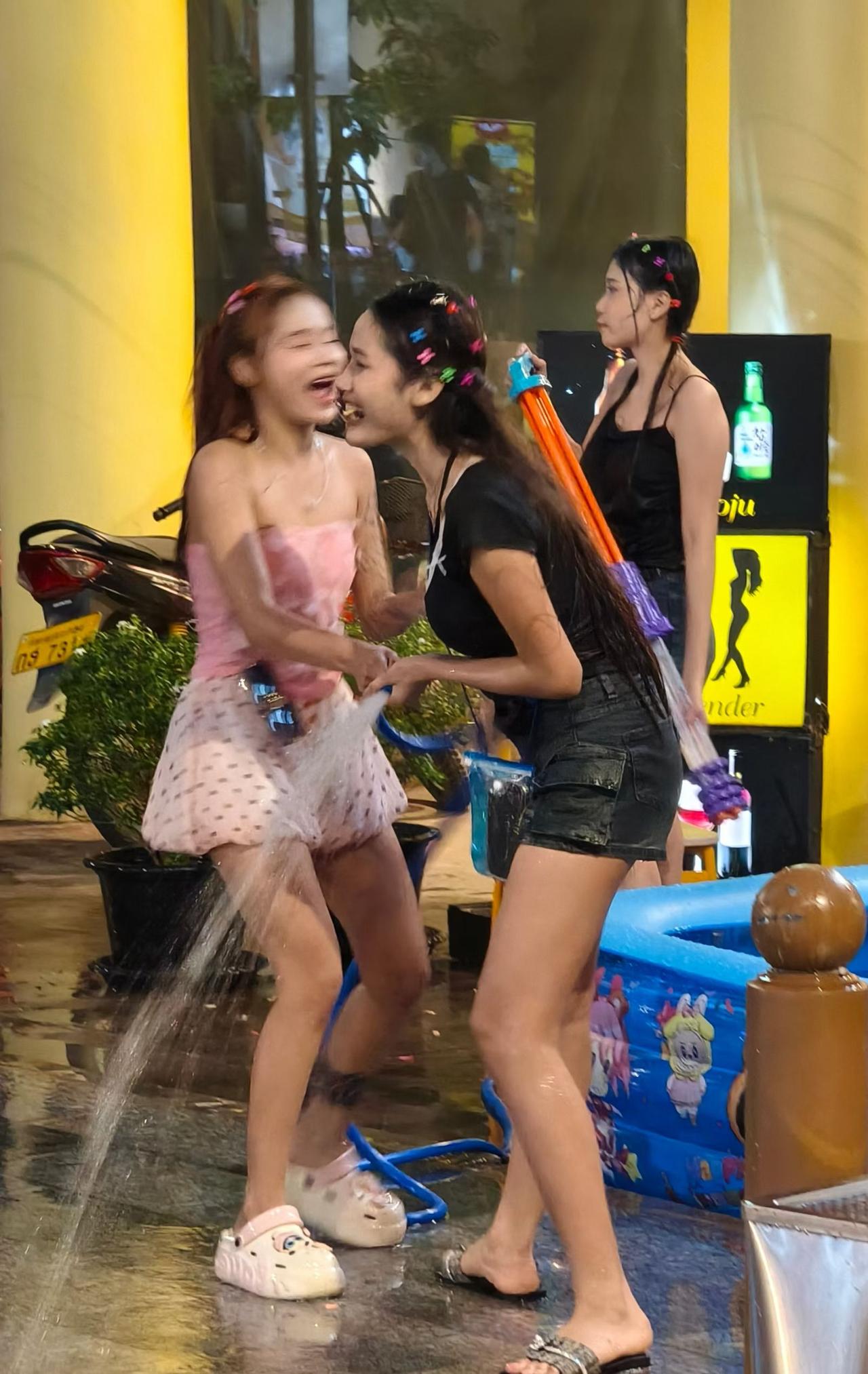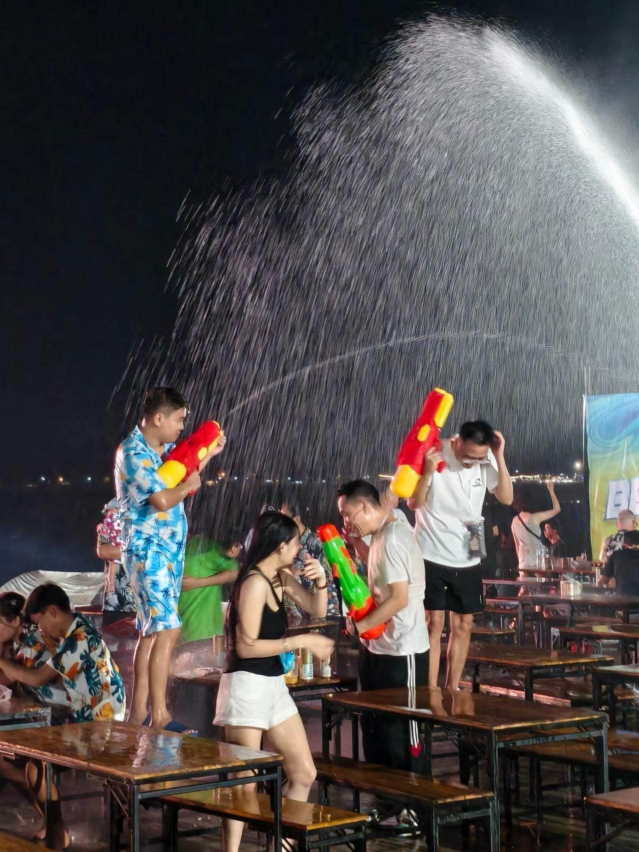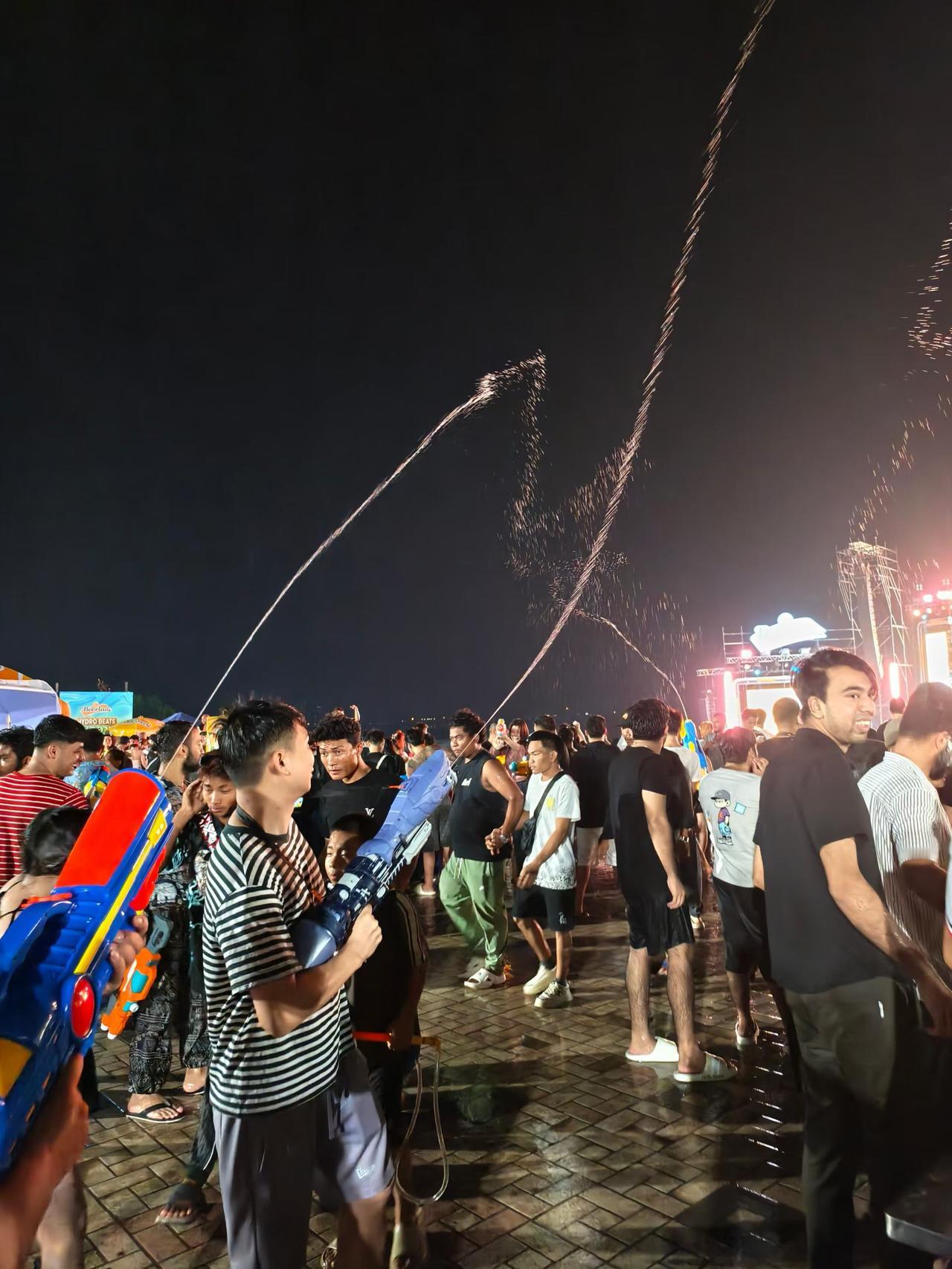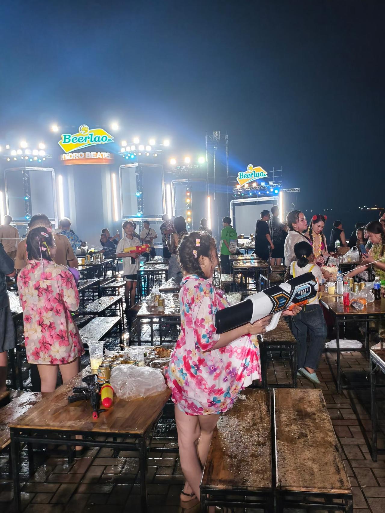 老挝琅勃拉邦,各国游客纷纷涌向湄公河边,泼水节氛围渐入佳境,已成一片欢乐的海洋[666][耶]