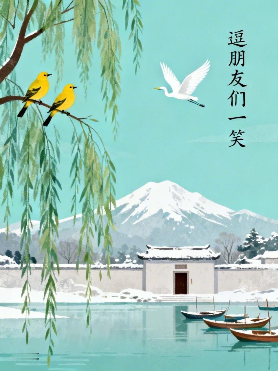 两个黄鹂鸣翠柳,