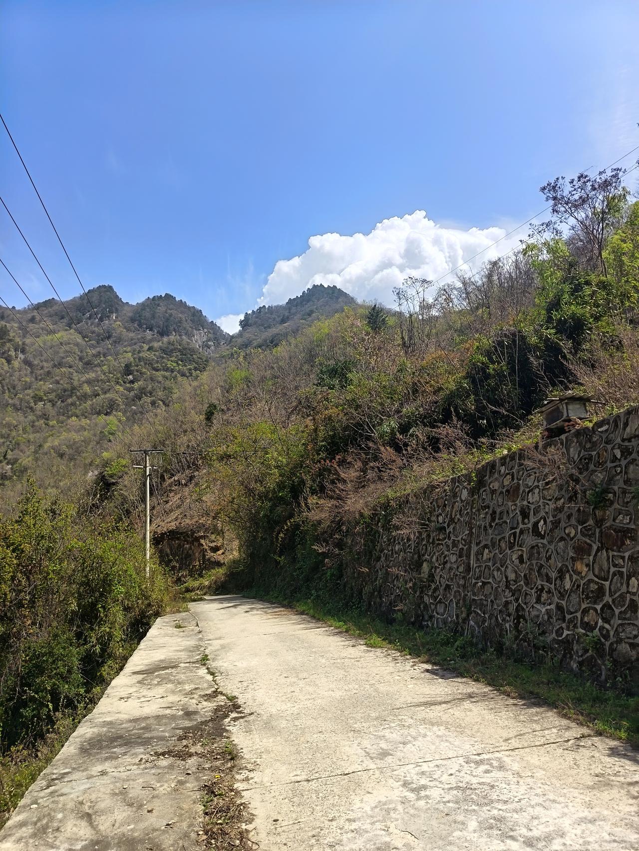 清明漫步于秦岭山中 一 崇山峻岭沟壑幽, 一山方过一山酬。 举足直道丈余远, 伸