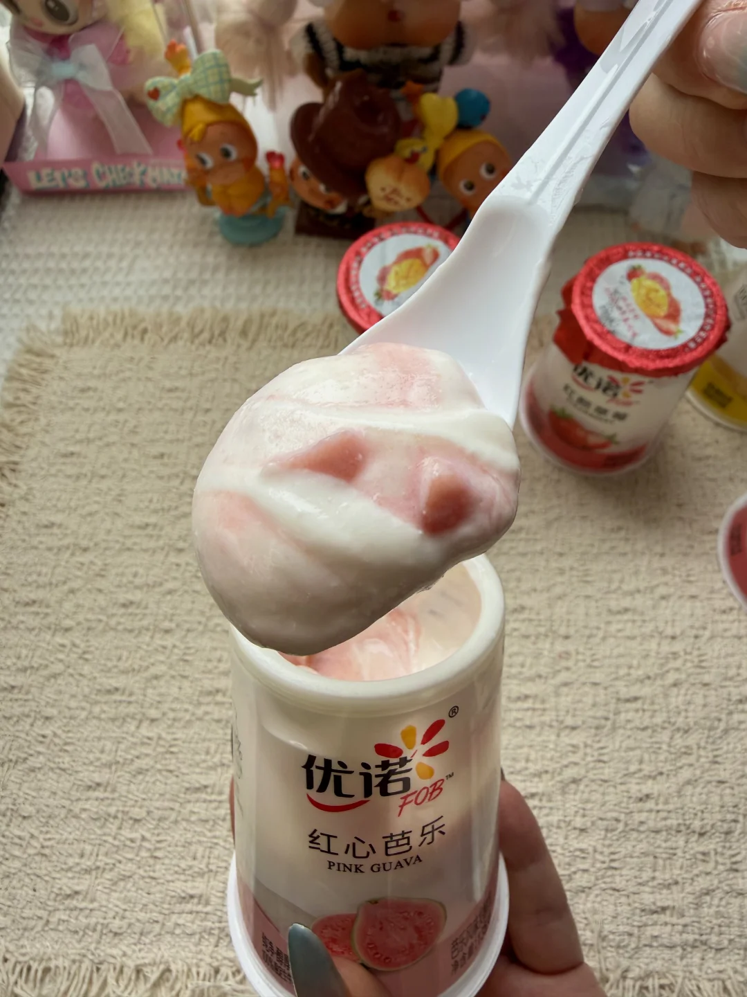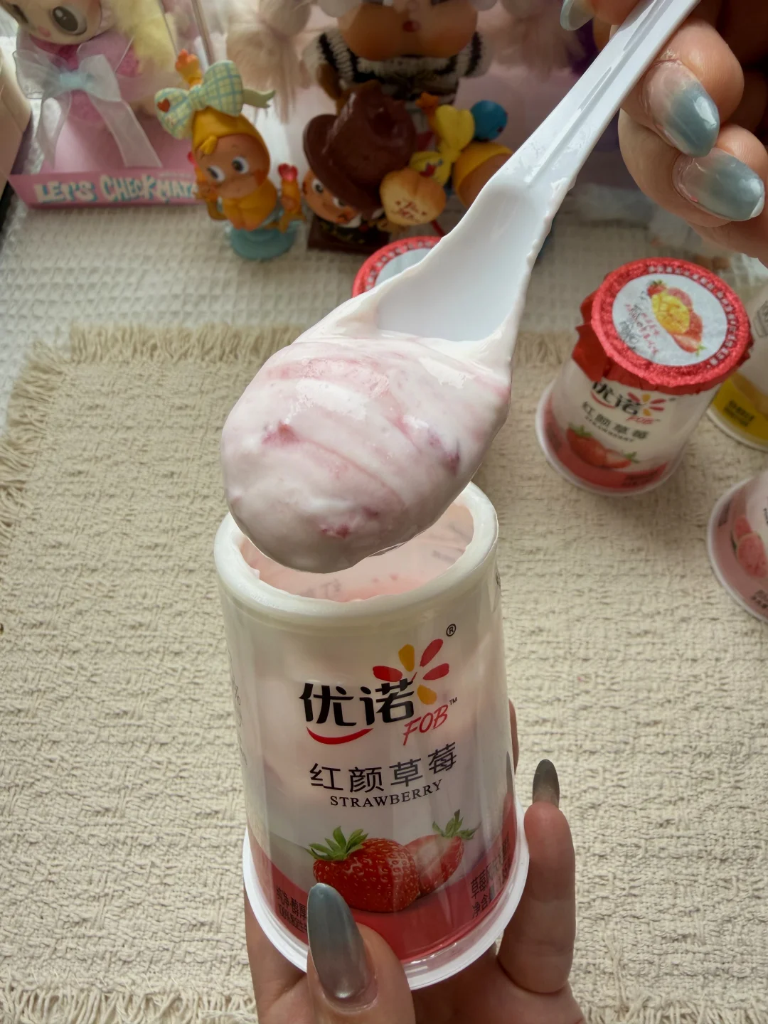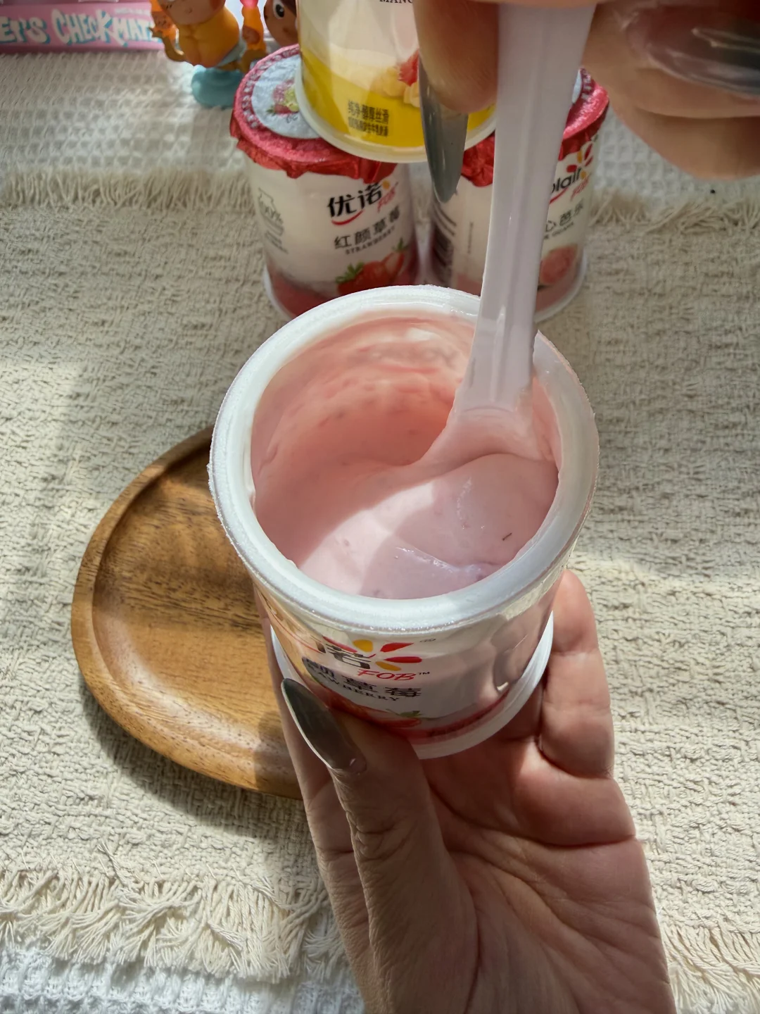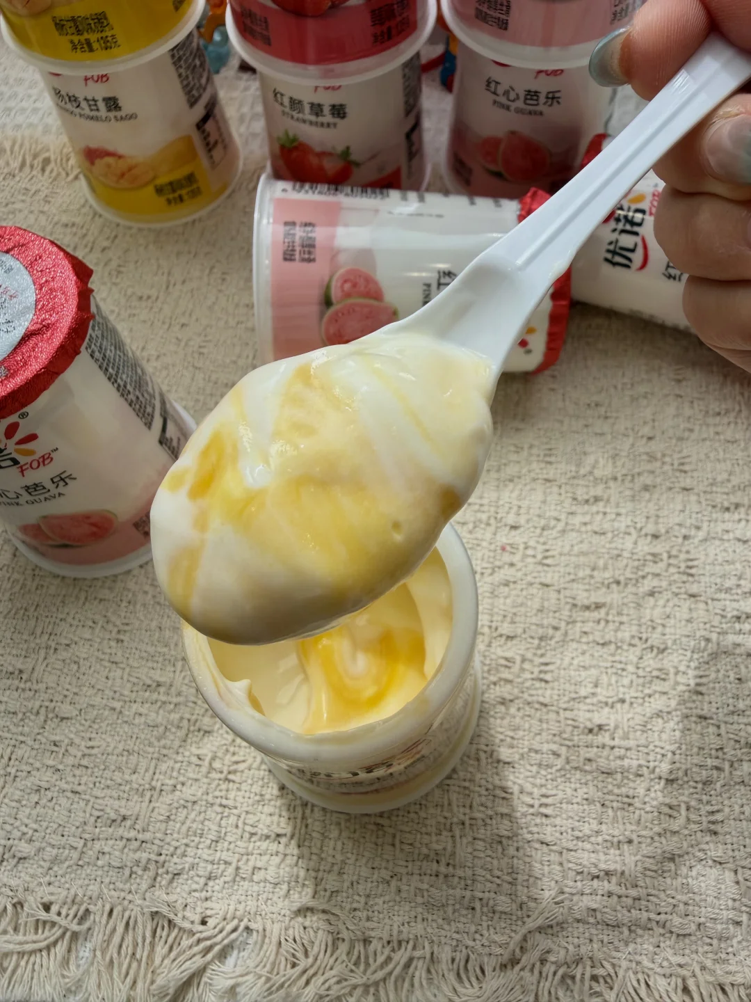 一杯解锁三种吃法,先吃醇厚酸奶,再挖底下的果粒.
