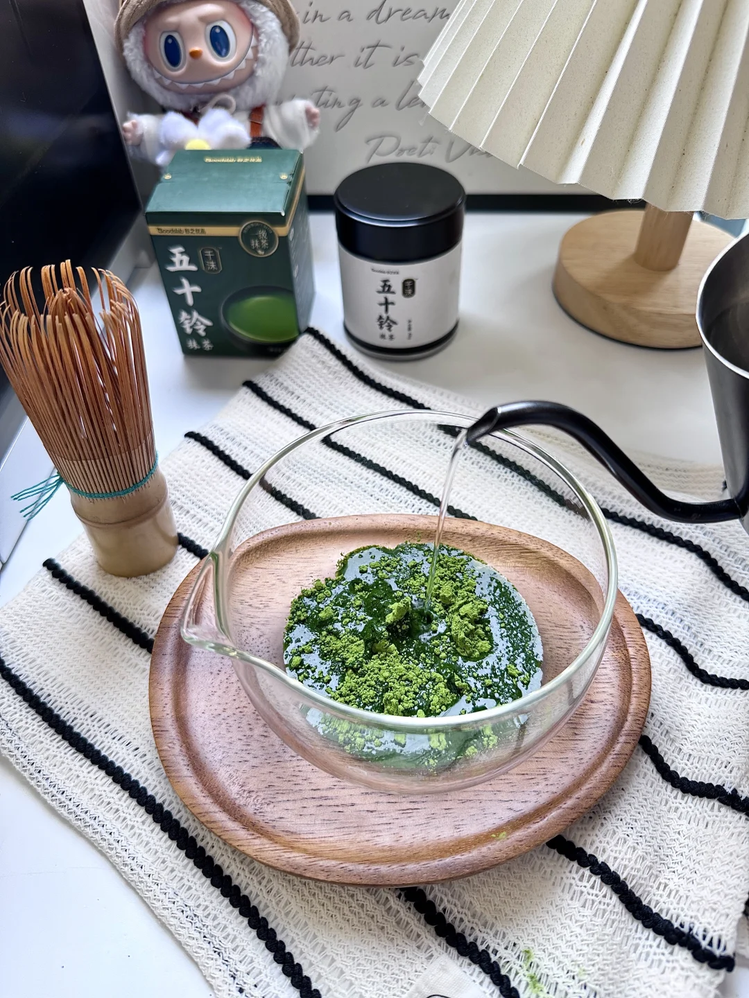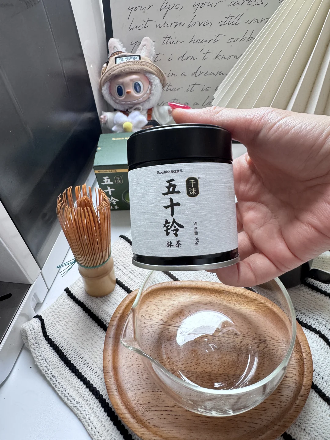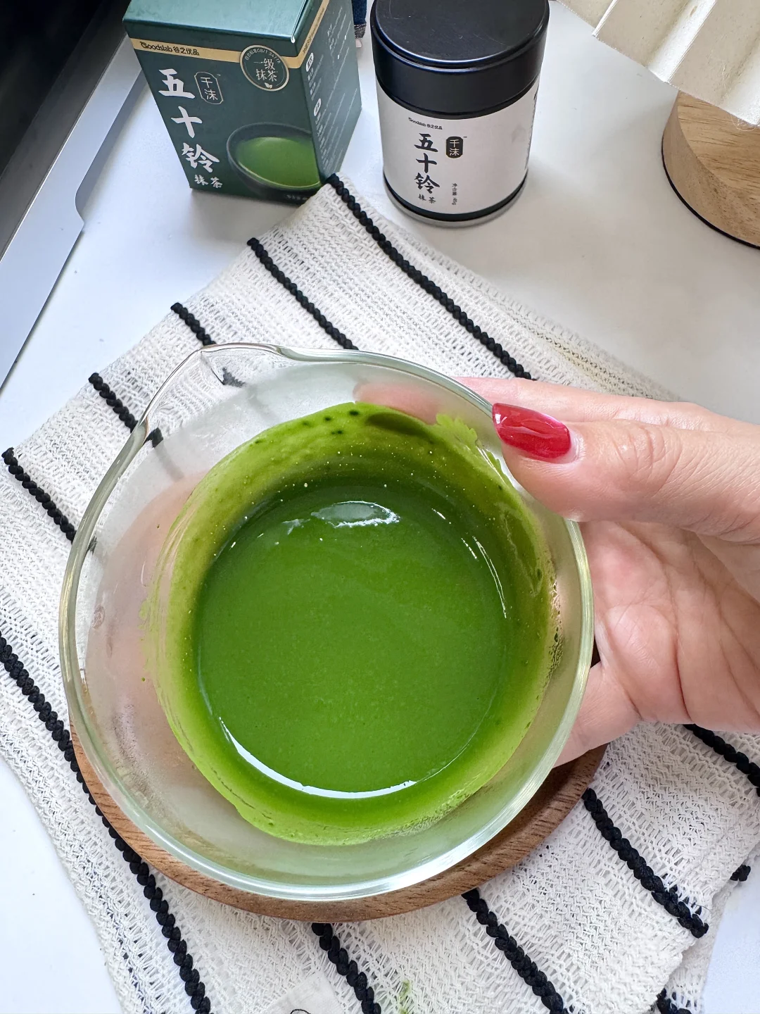 抹茶粉的选择:想要好喝的口感,起码要五十铃以上的品级,我这次喝的是谷之优品的新品:五十铃千沫,冲泡入水,海苔香随气浮动