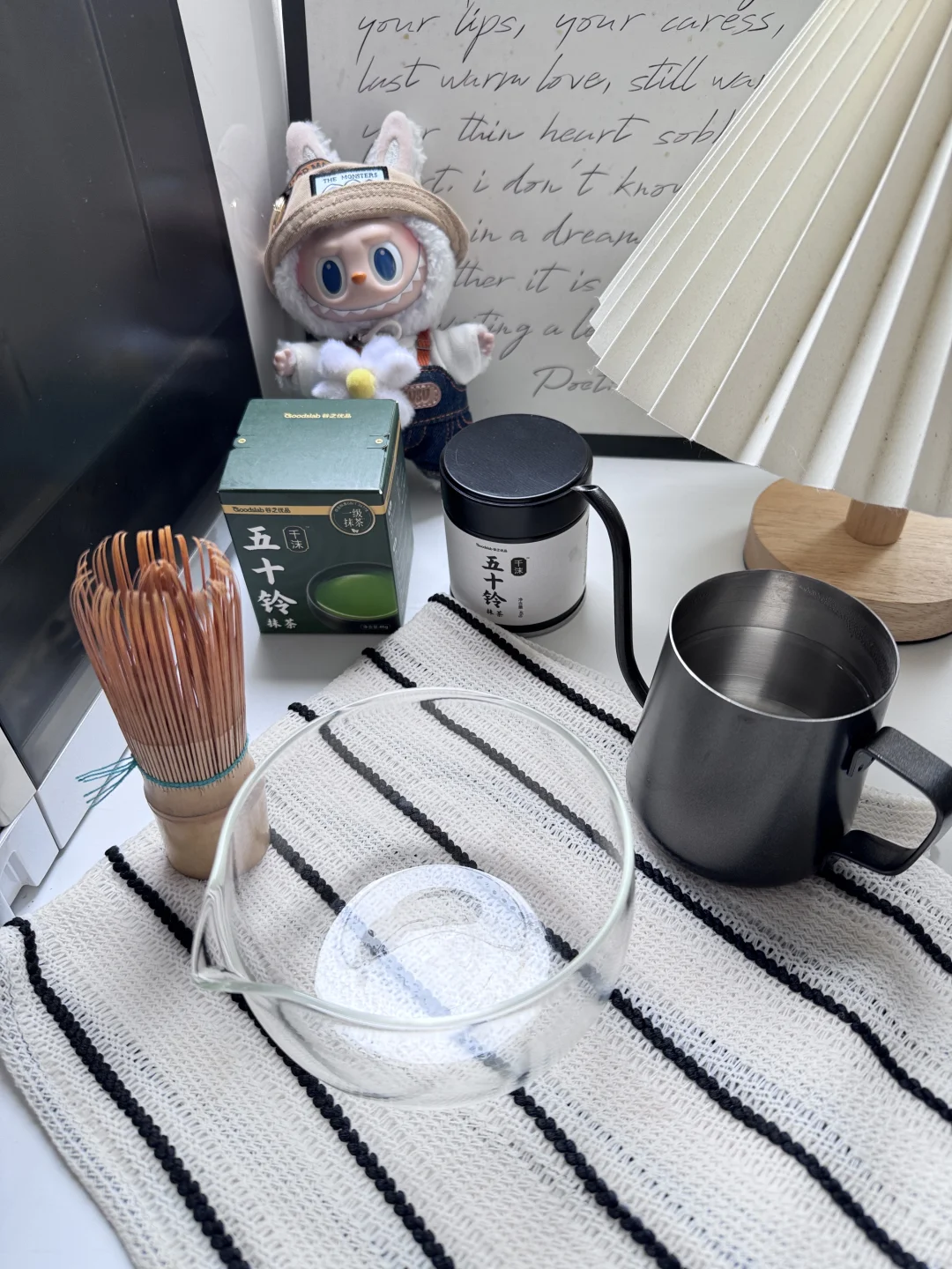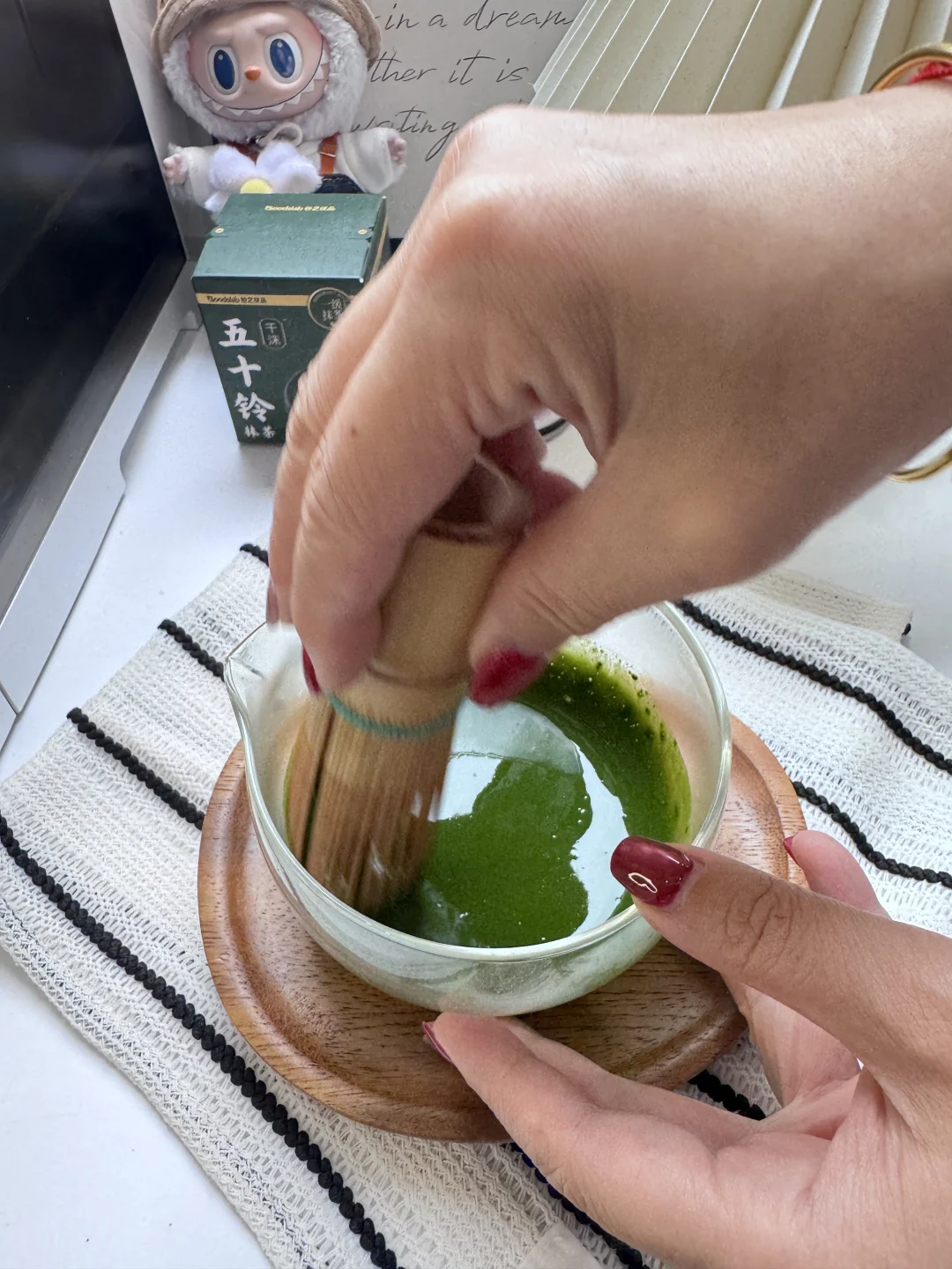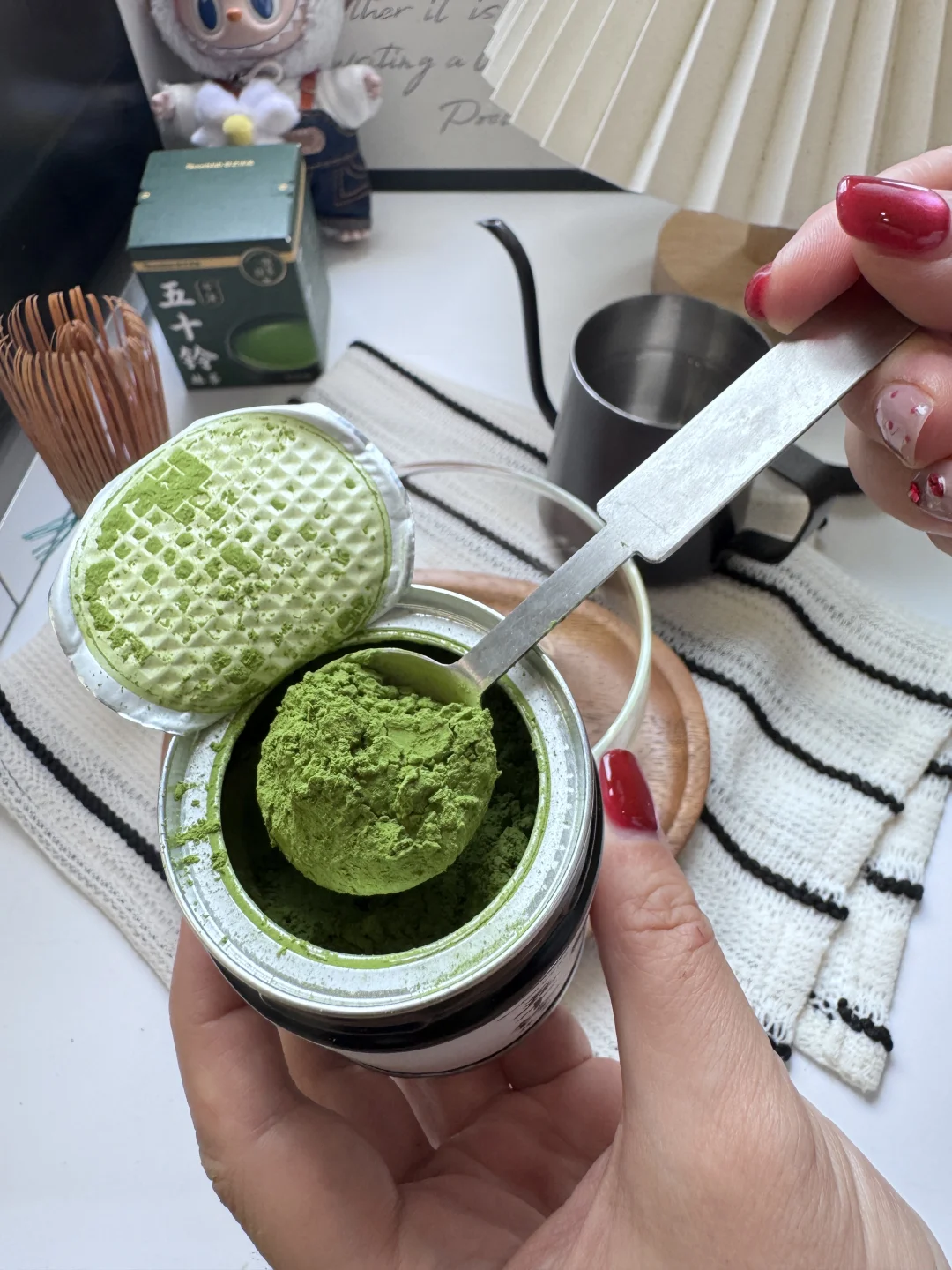 抹茶粉的选择:想要好喝的口感,起码要五十铃以上的品级,我这次喝的是谷之优品的新品:五十铃千沫,冲泡入水,海苔香随气浮动