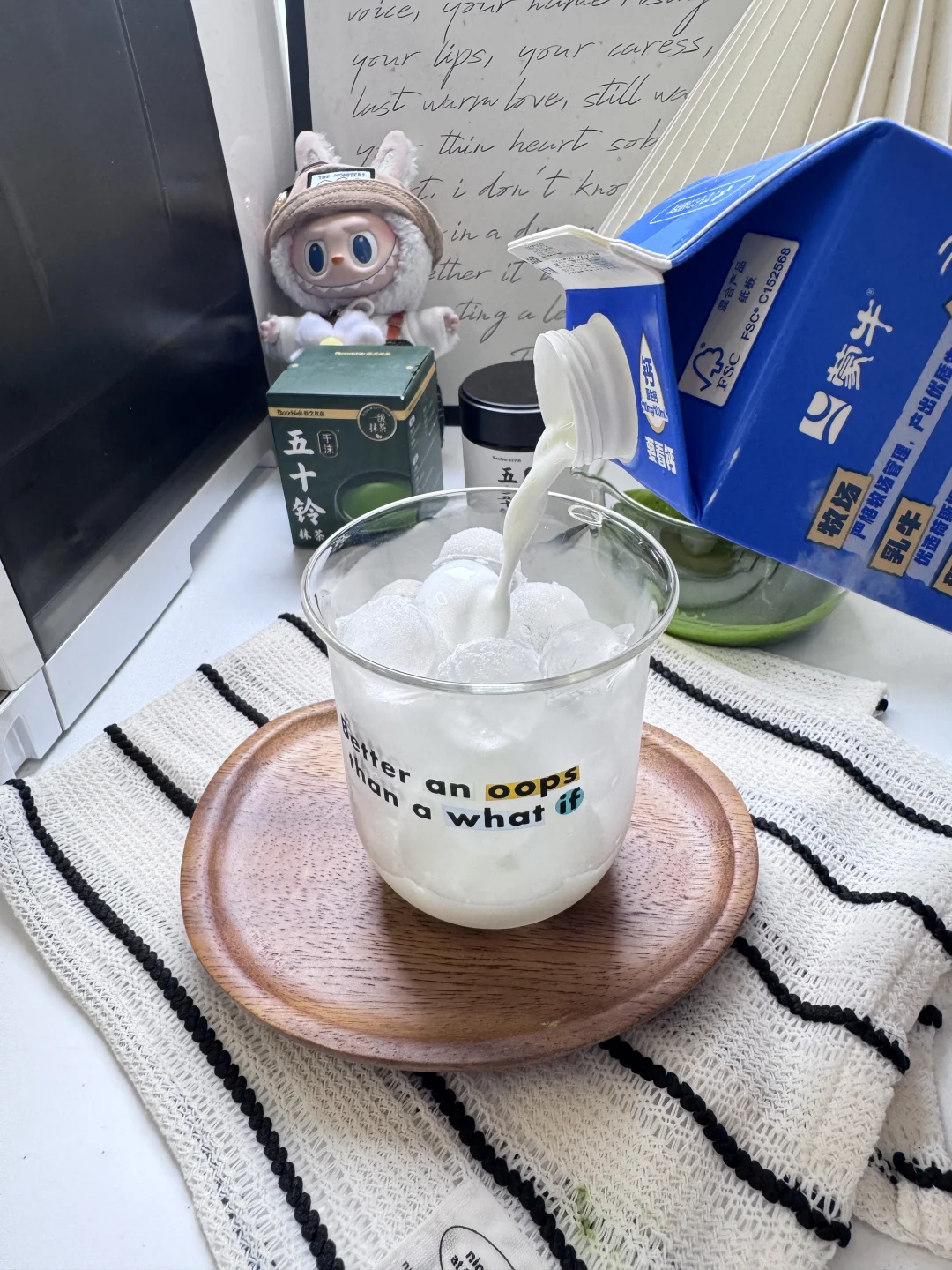 关于热饮冰饮:个人更喜欢冰饮,在低温下抹茶和牛奶融合的更好更平衡,热饮的奶味和抹茶香气会比较重。