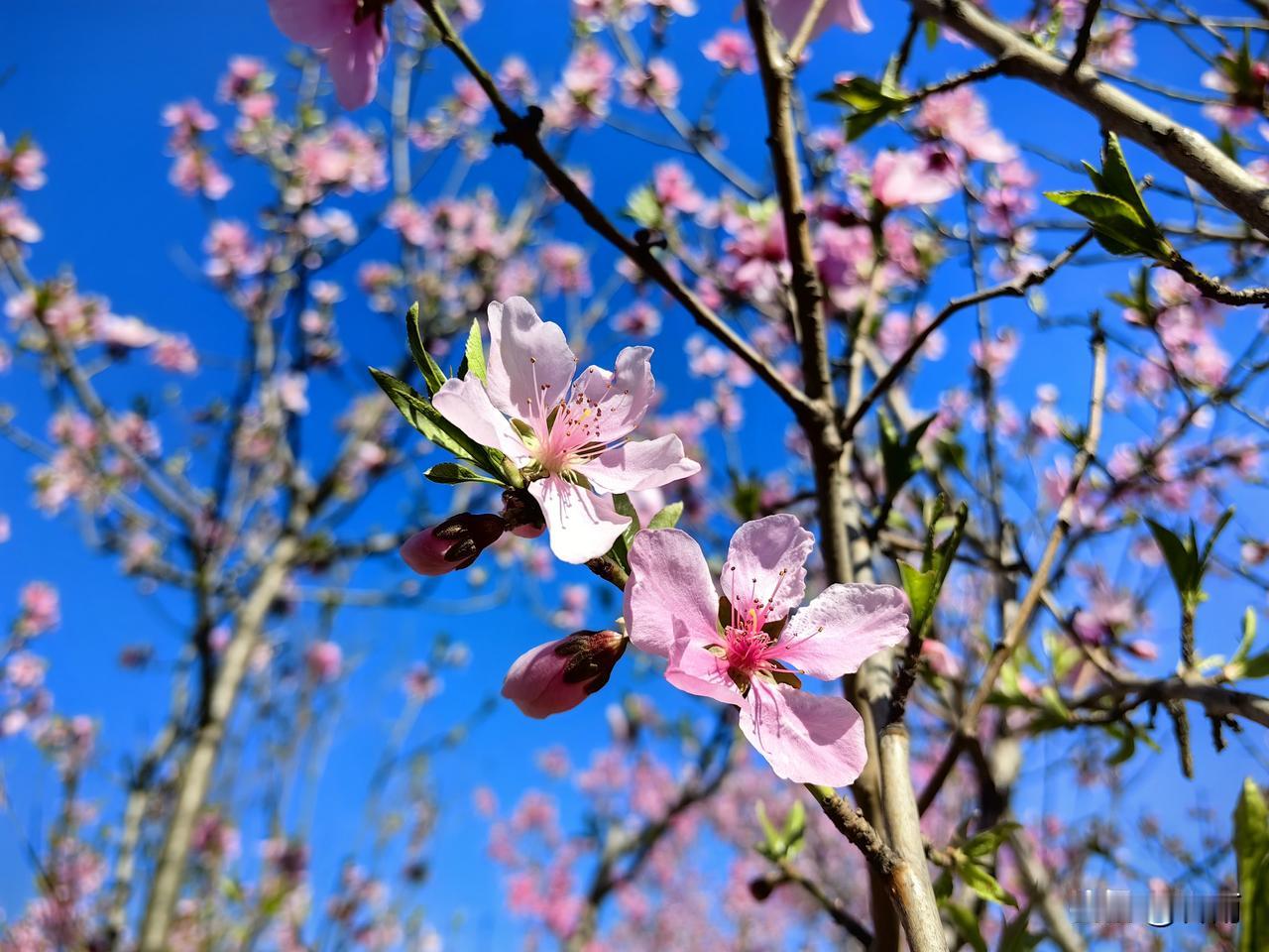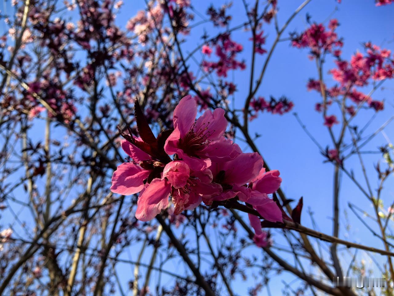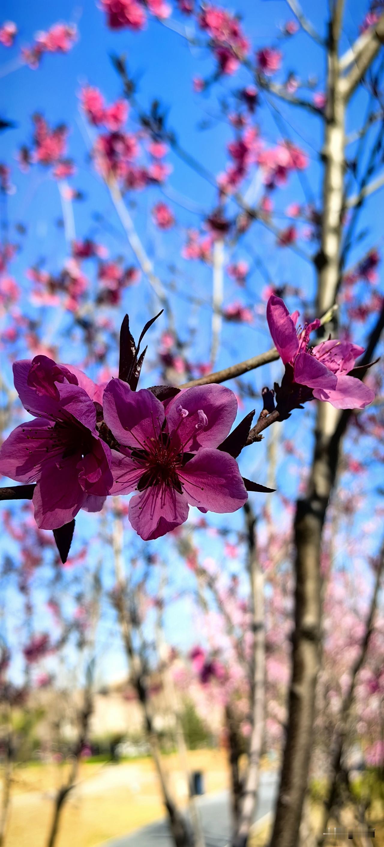 今天,我没有去景区打卡,在家门口的一个小公园捡了个大便宜,与一树树桃花撞了个满怀。
