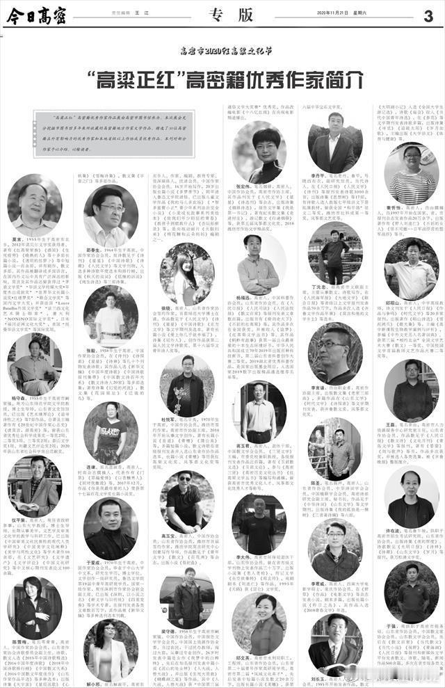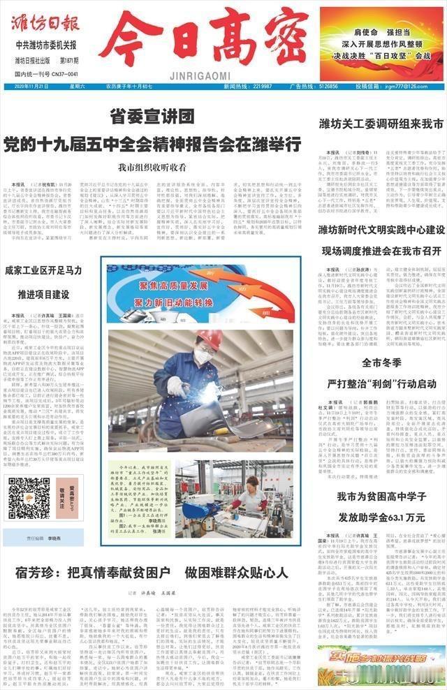 2020年11月21《潍坊日报》之《今日高密》专版对本人进行了报道。