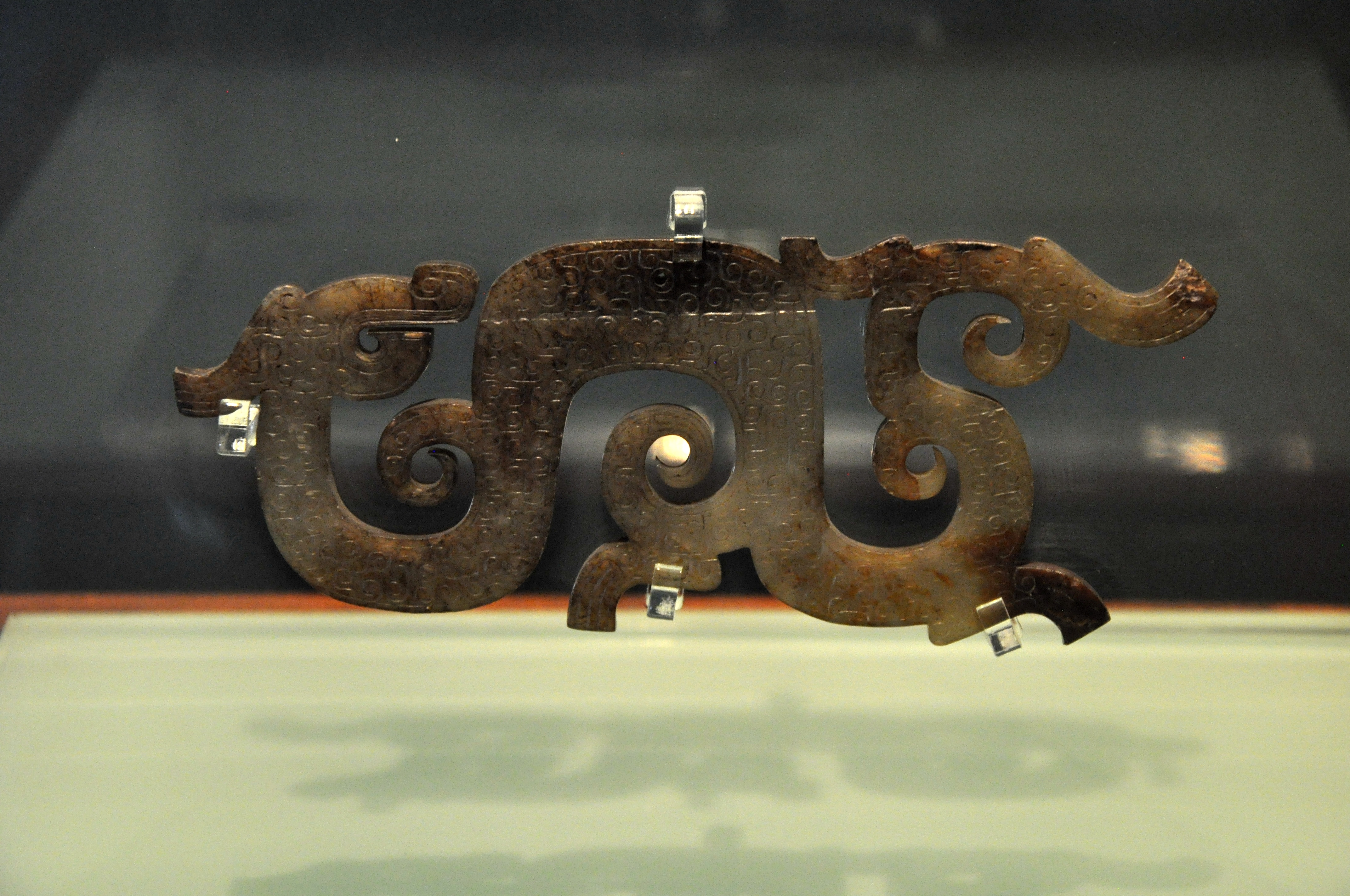 湖北荆州博物馆藏荆州院墙湾战国楚墓出土 一对战国中期的龙形玉佩