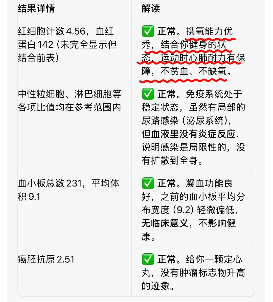 • 肺部、心电图全项正常,是规律运动给心肺系统筑牢的健康防线;