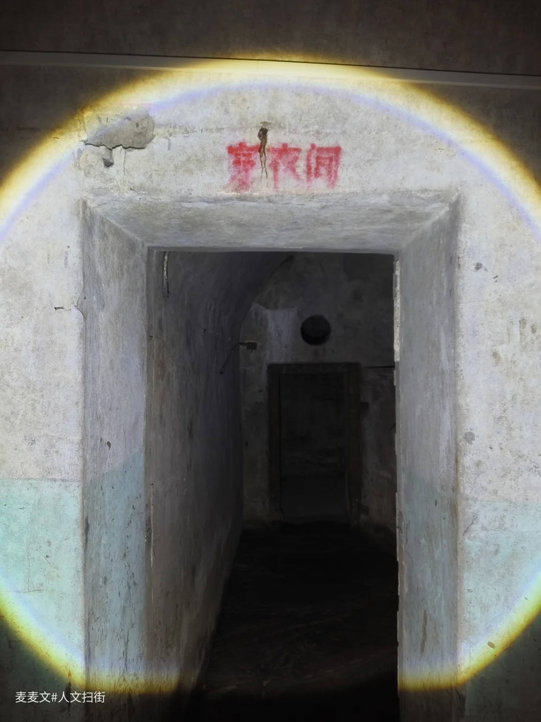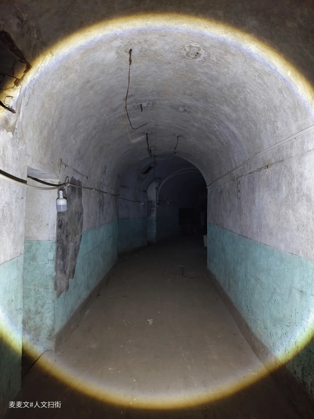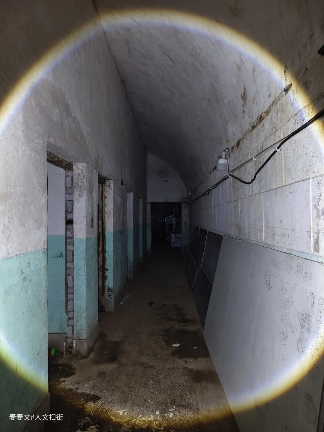 当年,防空洞内设病房、手术室、药房、化验室等一应俱全,战时可设病床100张。如今,墙面斑驳的绿白漆皮剥落,裸露的电线缠绕在洞壁,锈迹斑斑的金属门依稀刻着“换药间”字样,时光仿佛在此停滞。