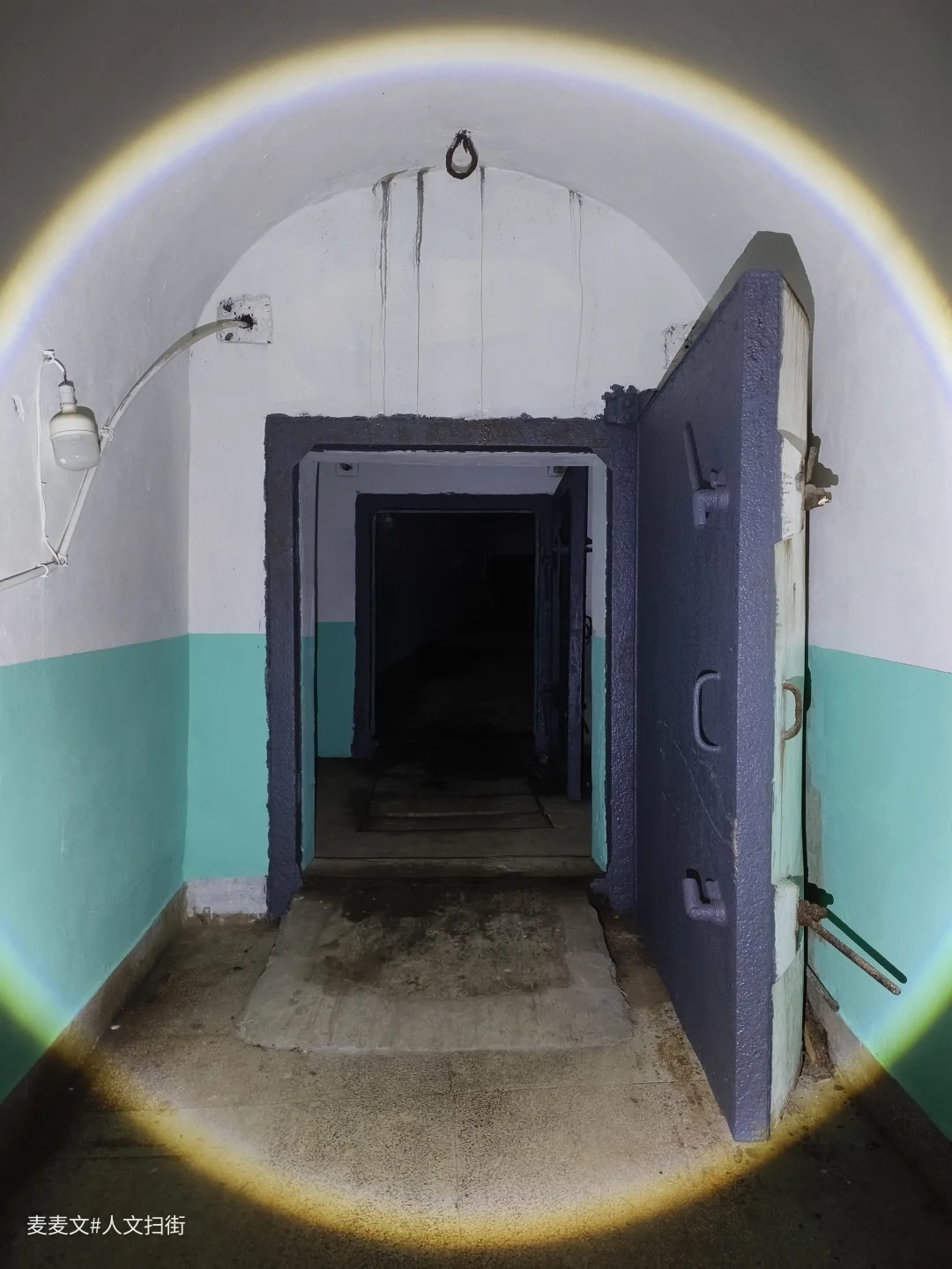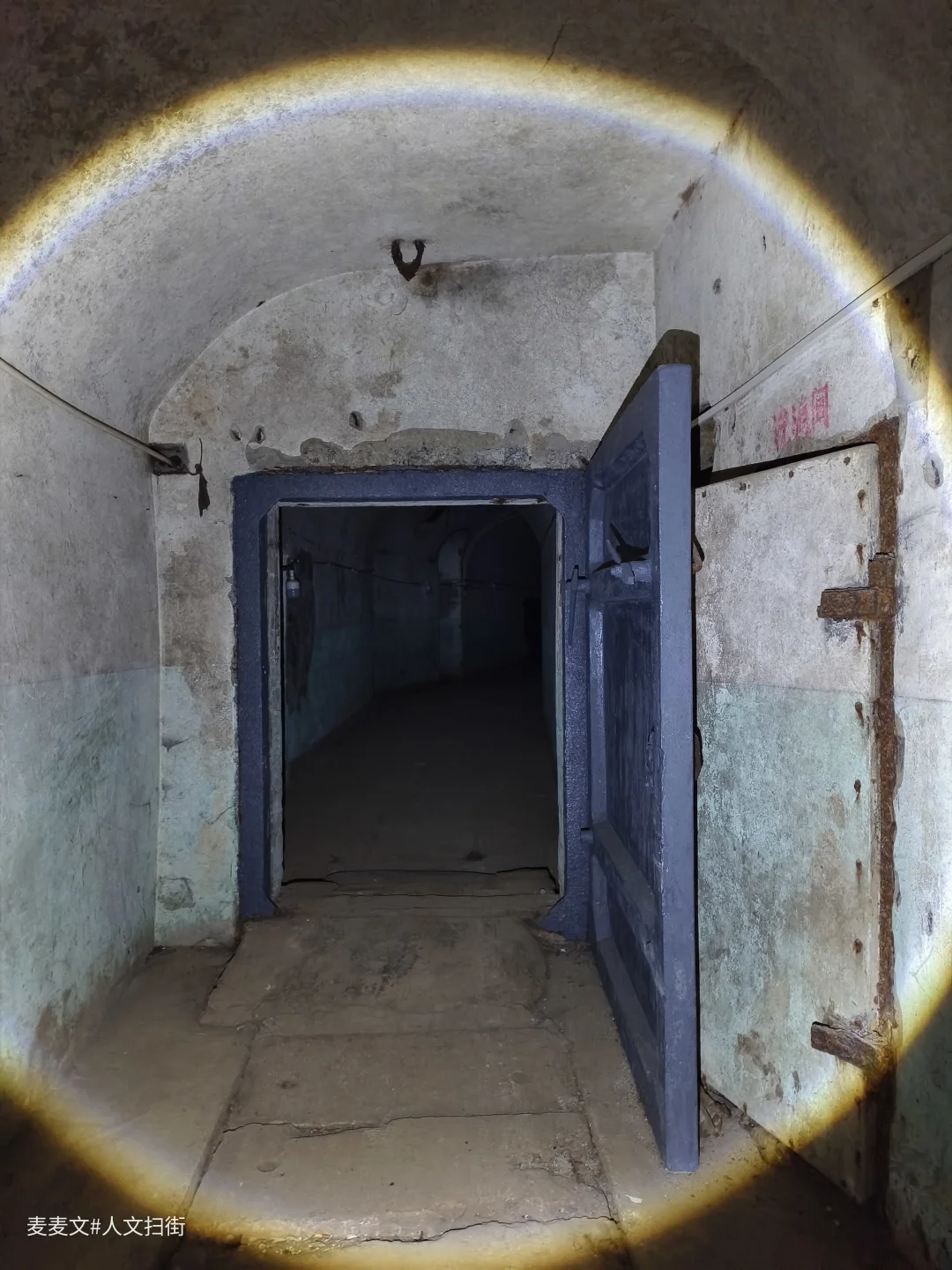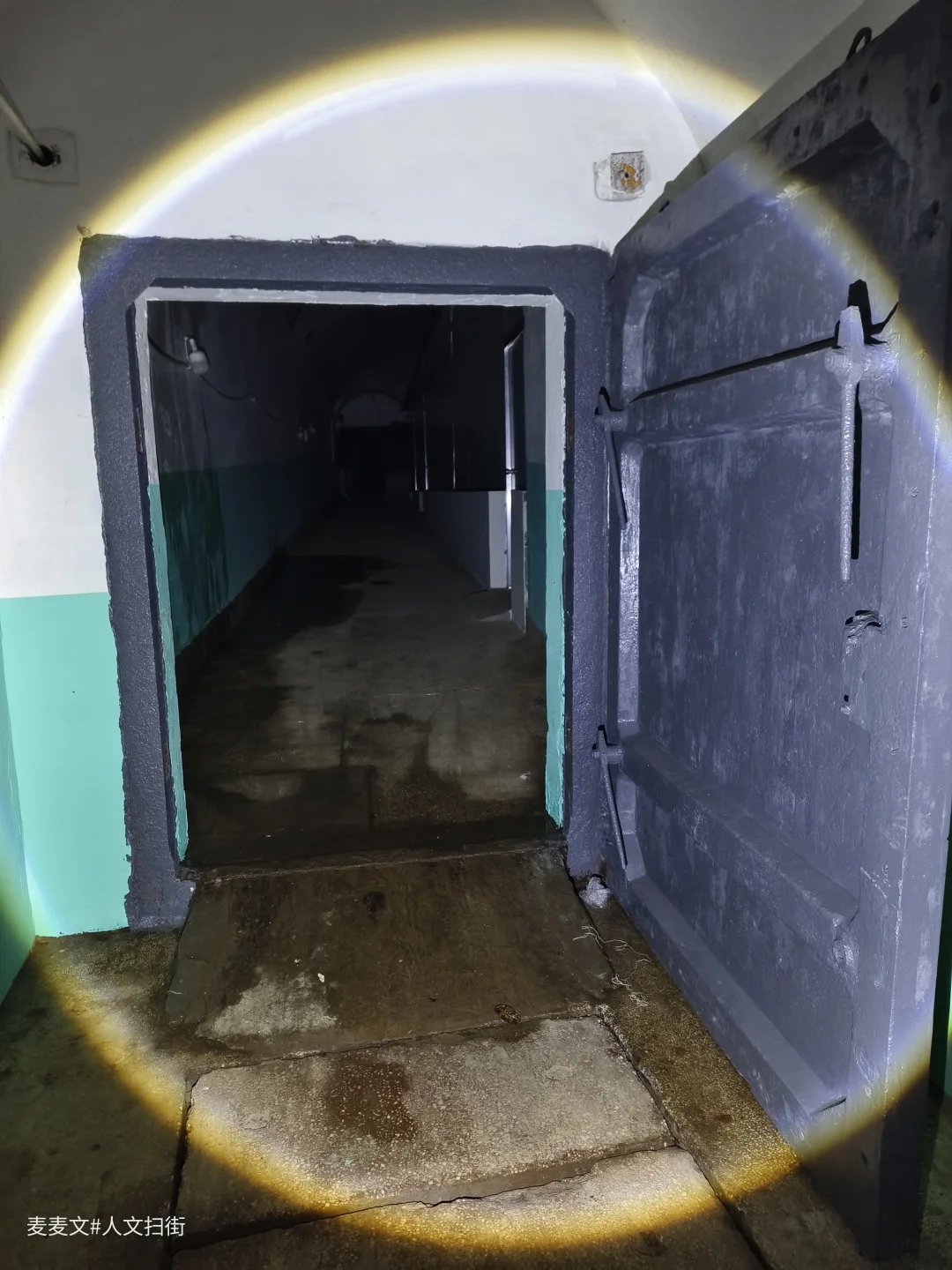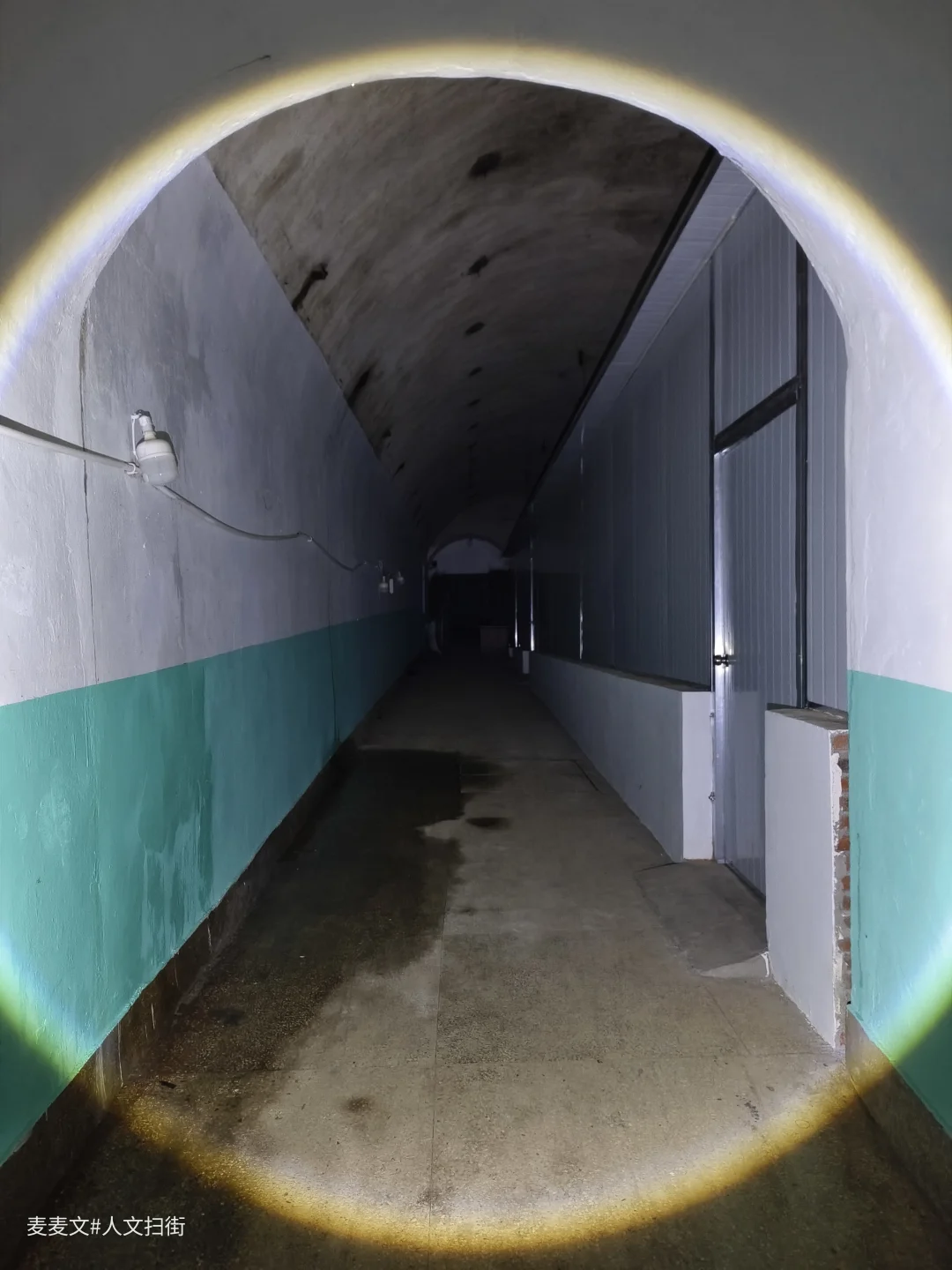 当年,防空洞内设病房、手术室、药房、化验室等一应俱全,战时可设病床100张。如今,墙面斑驳的绿白漆皮剥落,裸露的电线缠绕在洞壁,锈迹斑斑的金属门依稀刻着“换药间”字样,时光仿佛在此停滞。