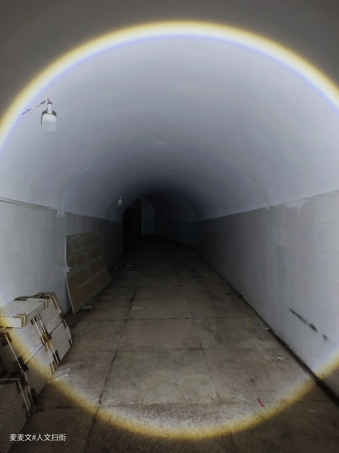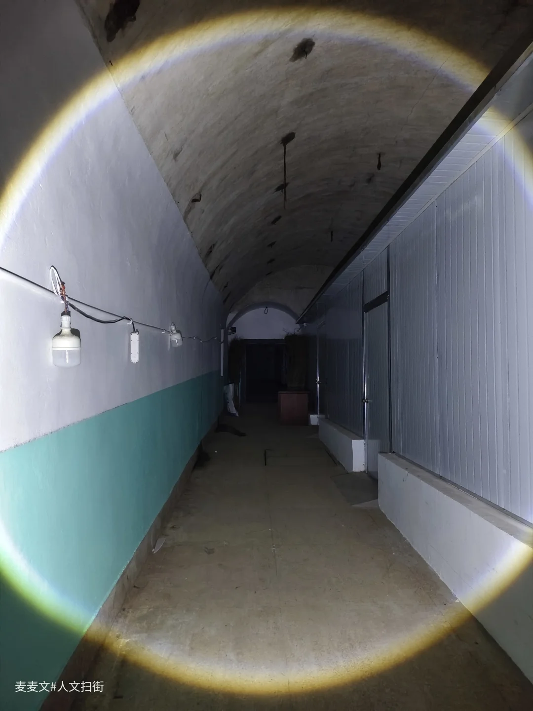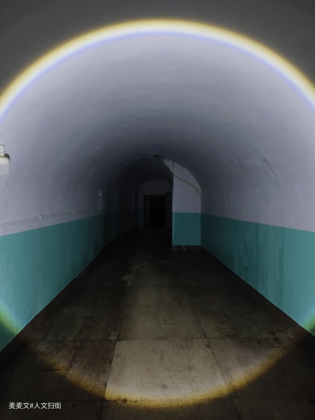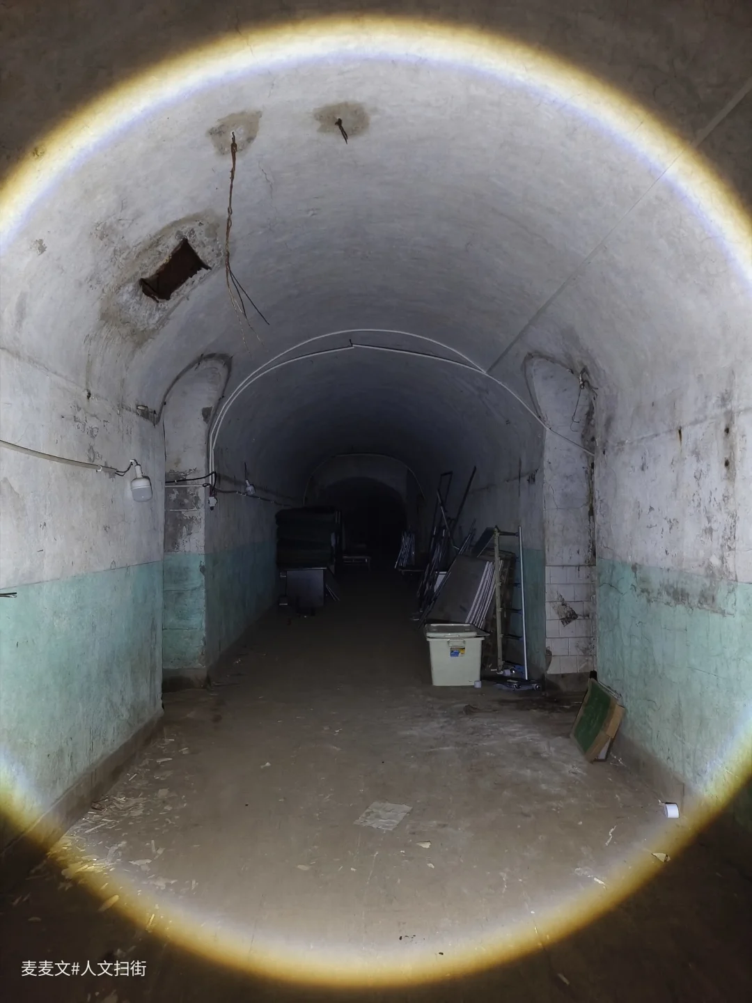 洞内,堆叠的绿色床垫、闲置的担架车静静伫立,弧形的洞顶延伸向黑暗深处,每一处细节都藏着战时应急的印记。这里曾是隐蔽的生命防线,承载着守护与坚守的使命。行走其间,手电光束扫过满是岁月痕迹的角落,仿佛能听见当年的脚步声与呼救声,满是震撼与感慨。