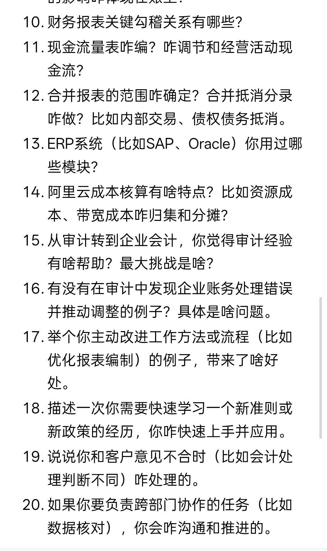 15. 从审计转到企业会计,你觉得审计经验有啥帮助?最大挑战是啥?