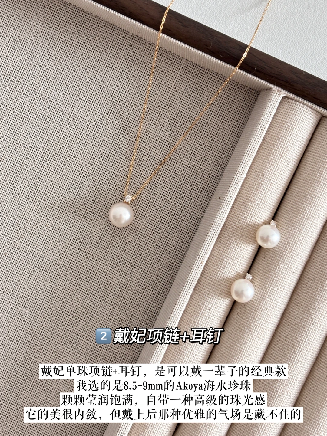 戴妃单珠项链+耳钉,是可以戴一辈子的经典款