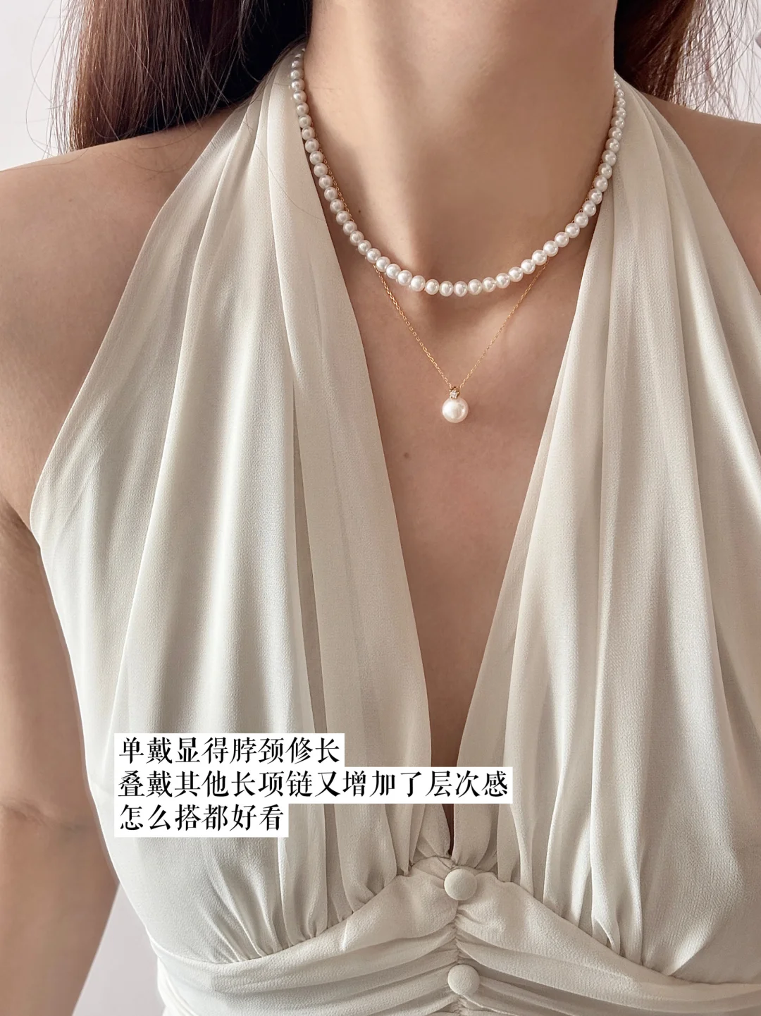 刚好点缀在锁骨处,每颗珍珠都圆润饱满、光泽透亮