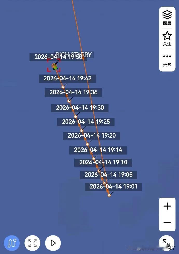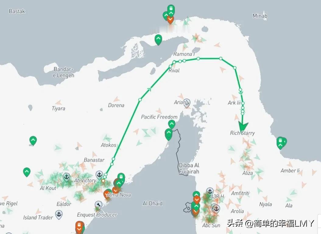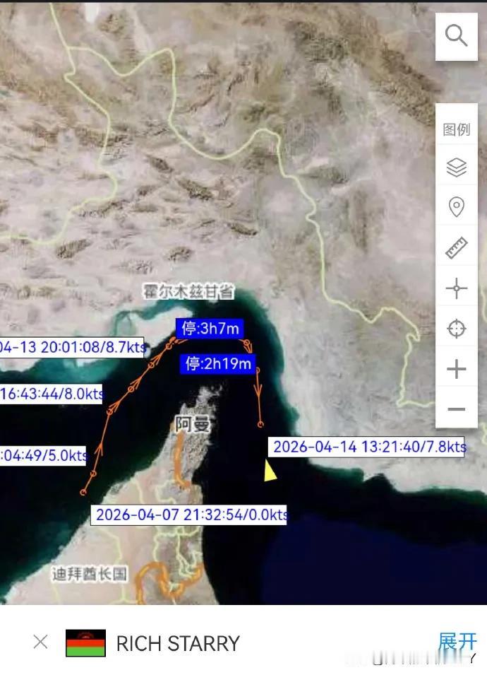 值得注意的是,还有一艘列入美国制裁名单的“Rich Starry号”油轮,从阿联酋哈姆里亚港出发,试图通过霍尔木兹海峡,船上装载着约25万桶甲醇,是特朗普政府宣布封锁后首艘试图驶出波斯湾的油轮。