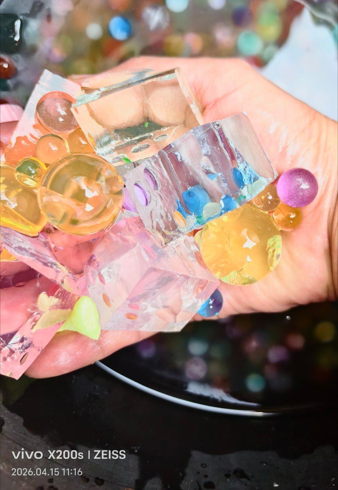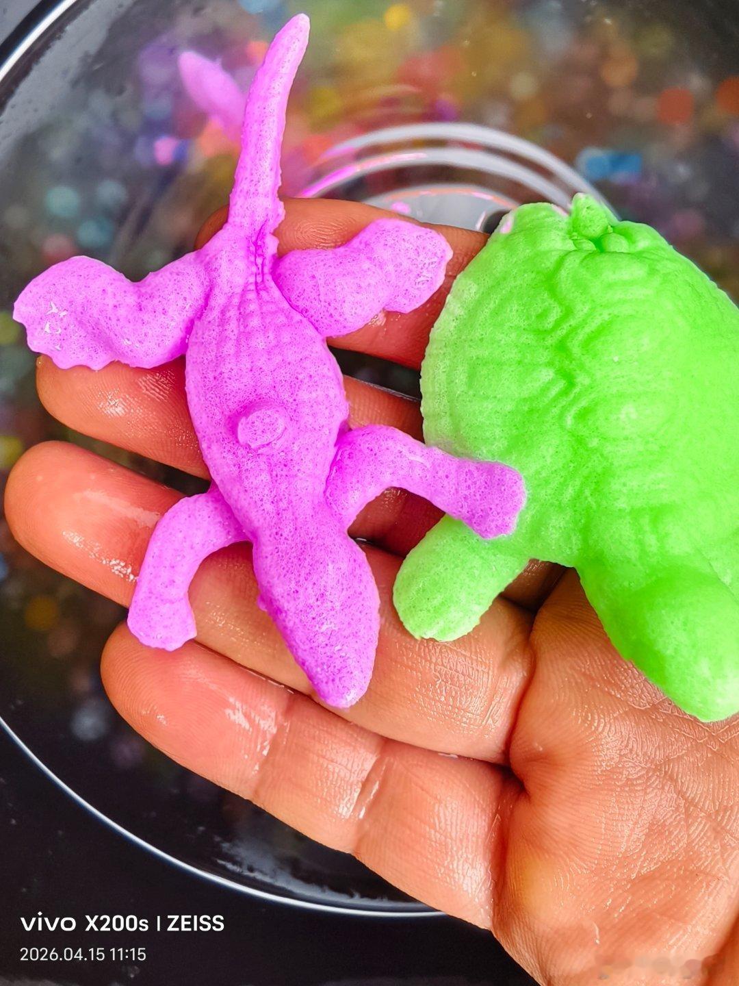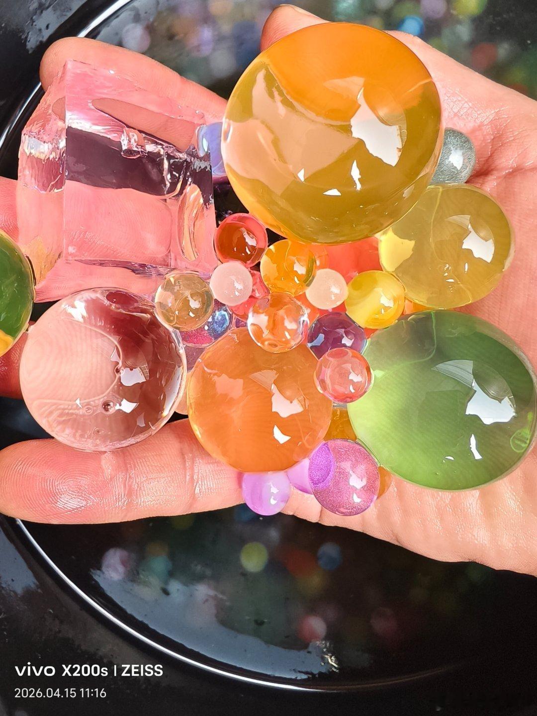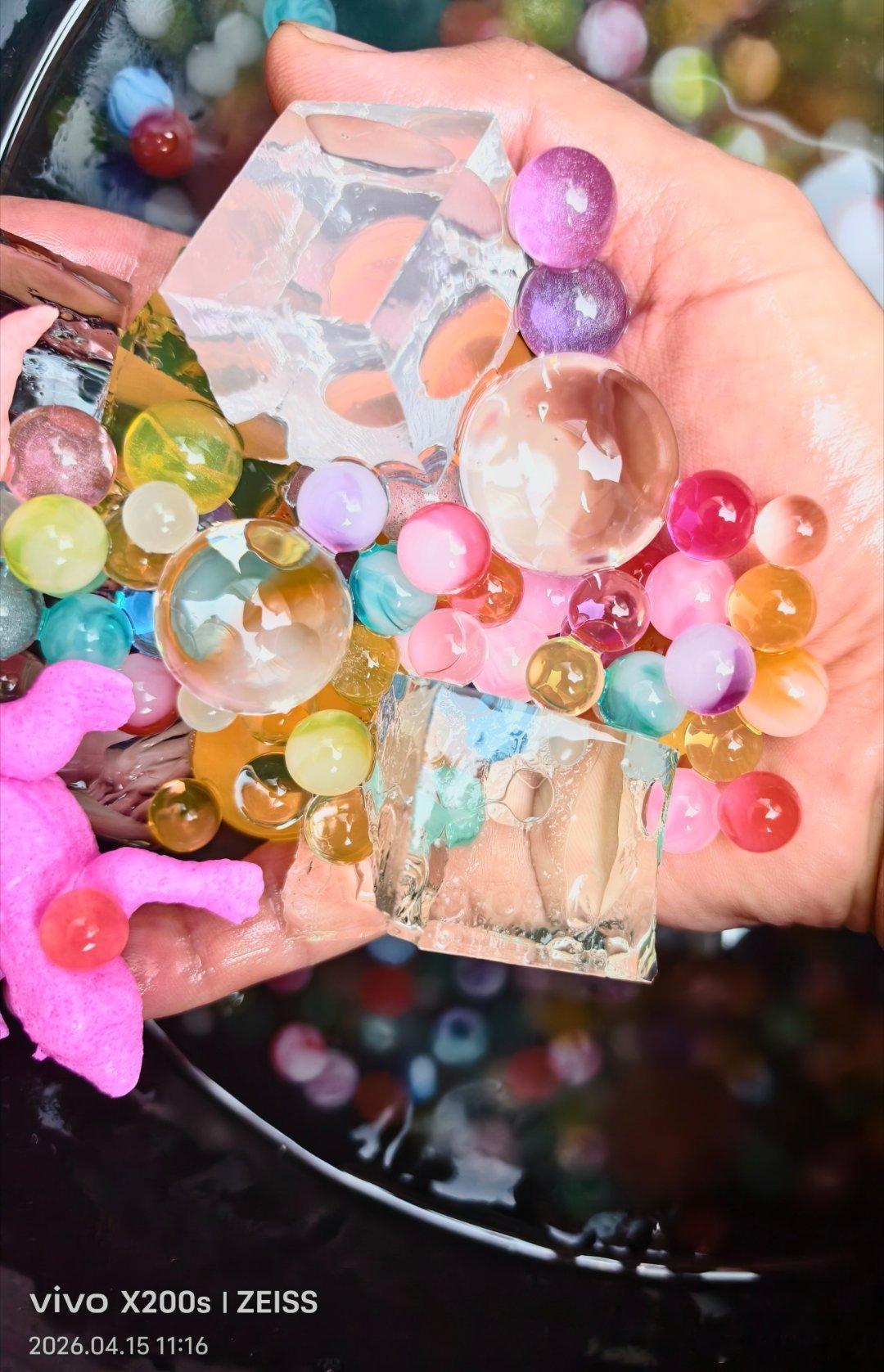 vivo 我姑娘的玩具,这也太好玩了,太治愈了🥳 彩色泡大珠圆滚滚像糖果,透明方块像冰块,还有软萌的膨胀小动物,把童年的快乐和清凉都握在手里啦~手机随手拍记录真实生活儿童玩具