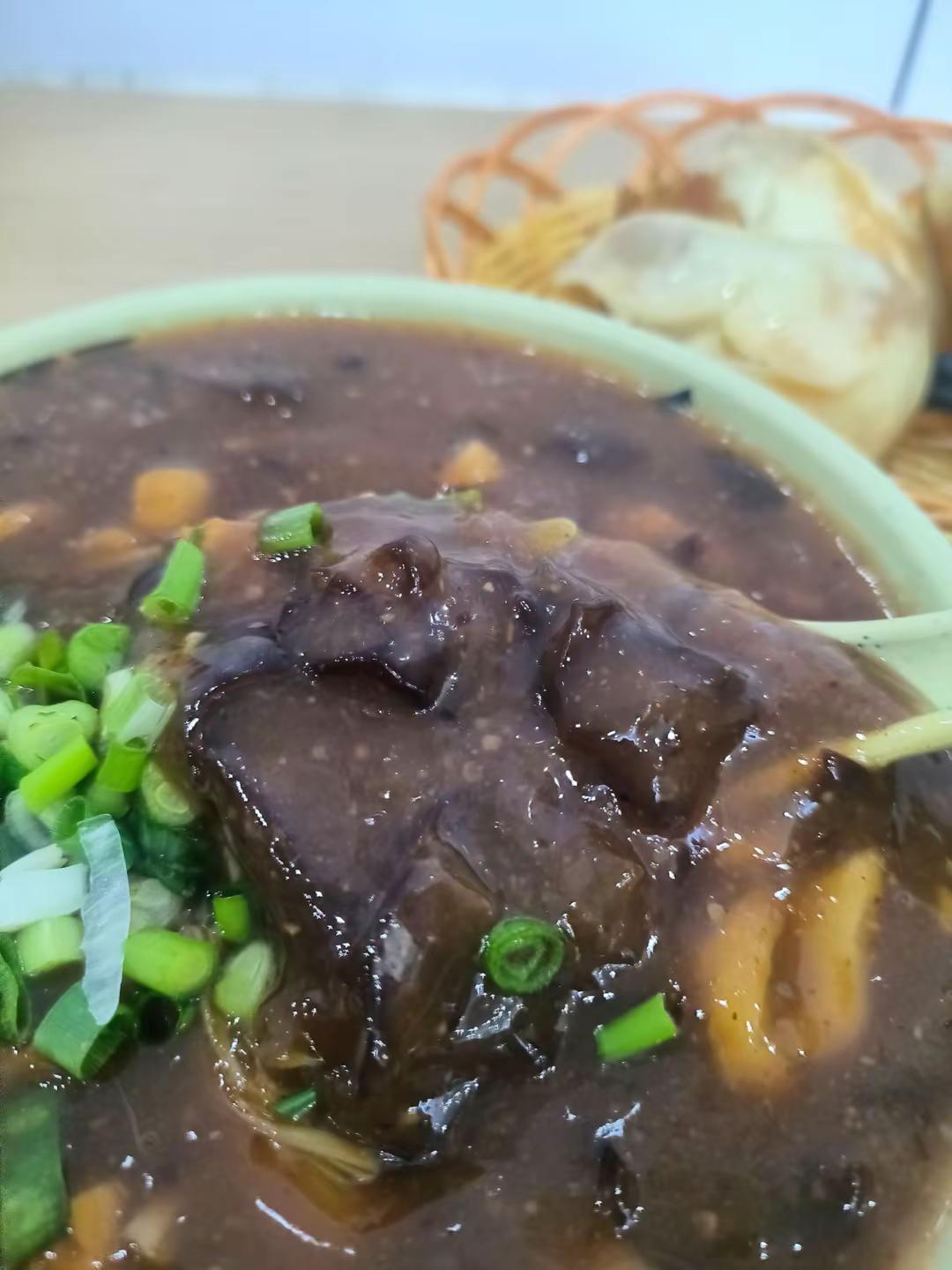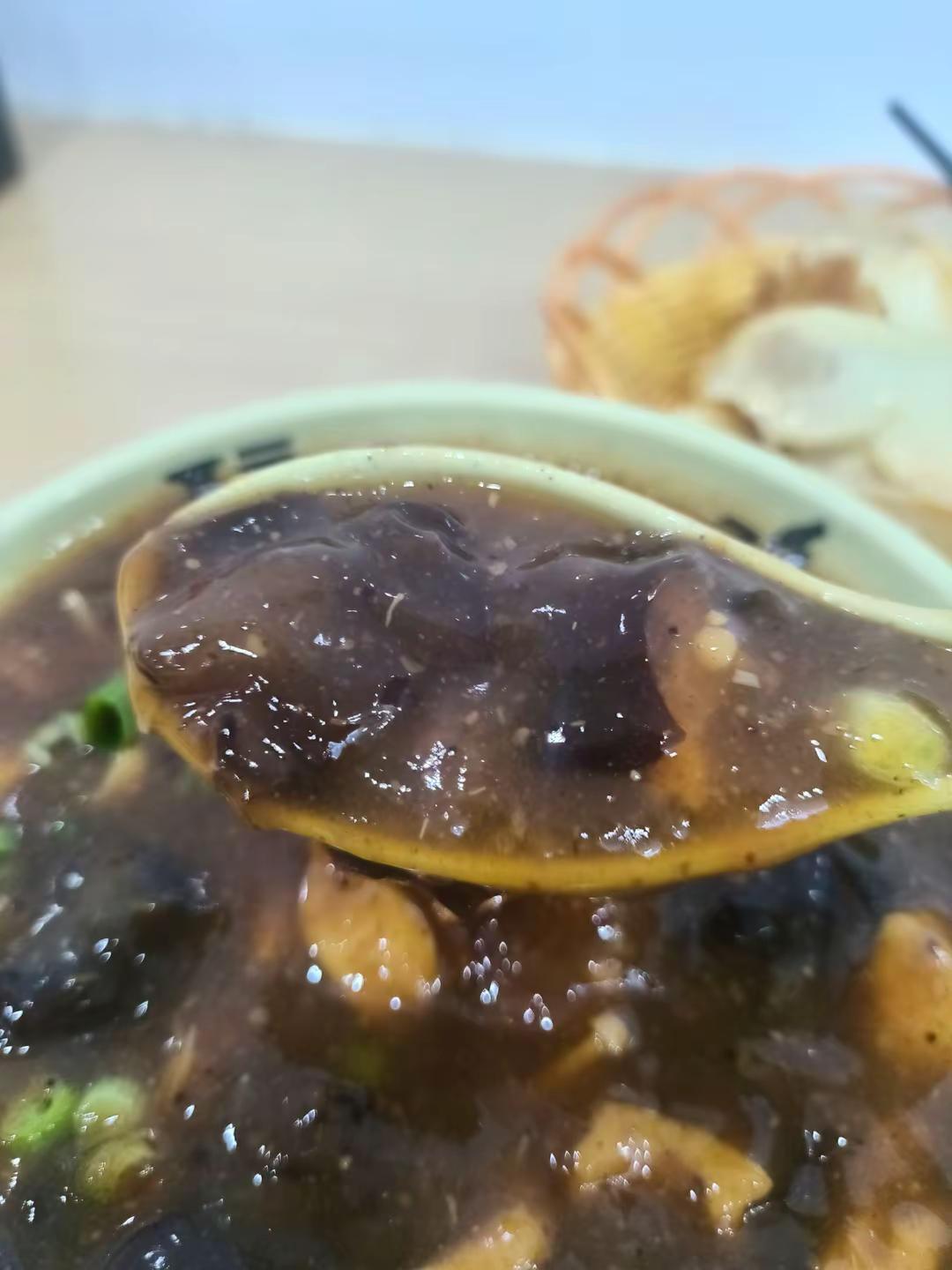 😋口味:要了一碗胡辣汤和三个水煎包,牛肉馅儿的。先说胡辣汤,胡辣汤应该做的时间比较长,所以都成坨了,像浆糊一样。但是实话实说,味道还可以,胡椒味儿比较突出,料味儿比较重,确实比较像逍遥镇胡辣汤,有点老味道了感觉。牛肉水煎包就是比较贵,5块钱三个。纯肉馅的,没有粉条也确实是牛肉吃起来比较香,那个包子皮没有那种松软的感觉,反而有一点咛。总的来说,当顿早饭吃还算不错。还有一点,就是我真的没有在胡辣汤里面吃到牛肉,真不是黑老板,是我真的没吃到,哪怕一片。美味的胡辣汤 胡辣汤 逍遥镇胡辣汤 水煎包