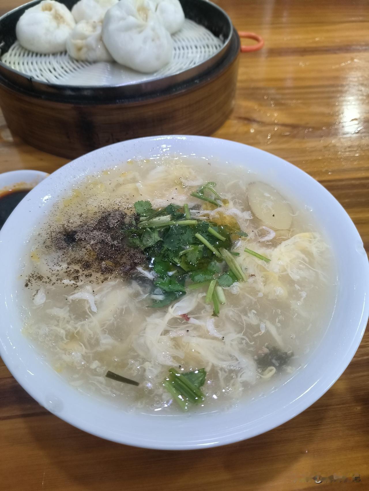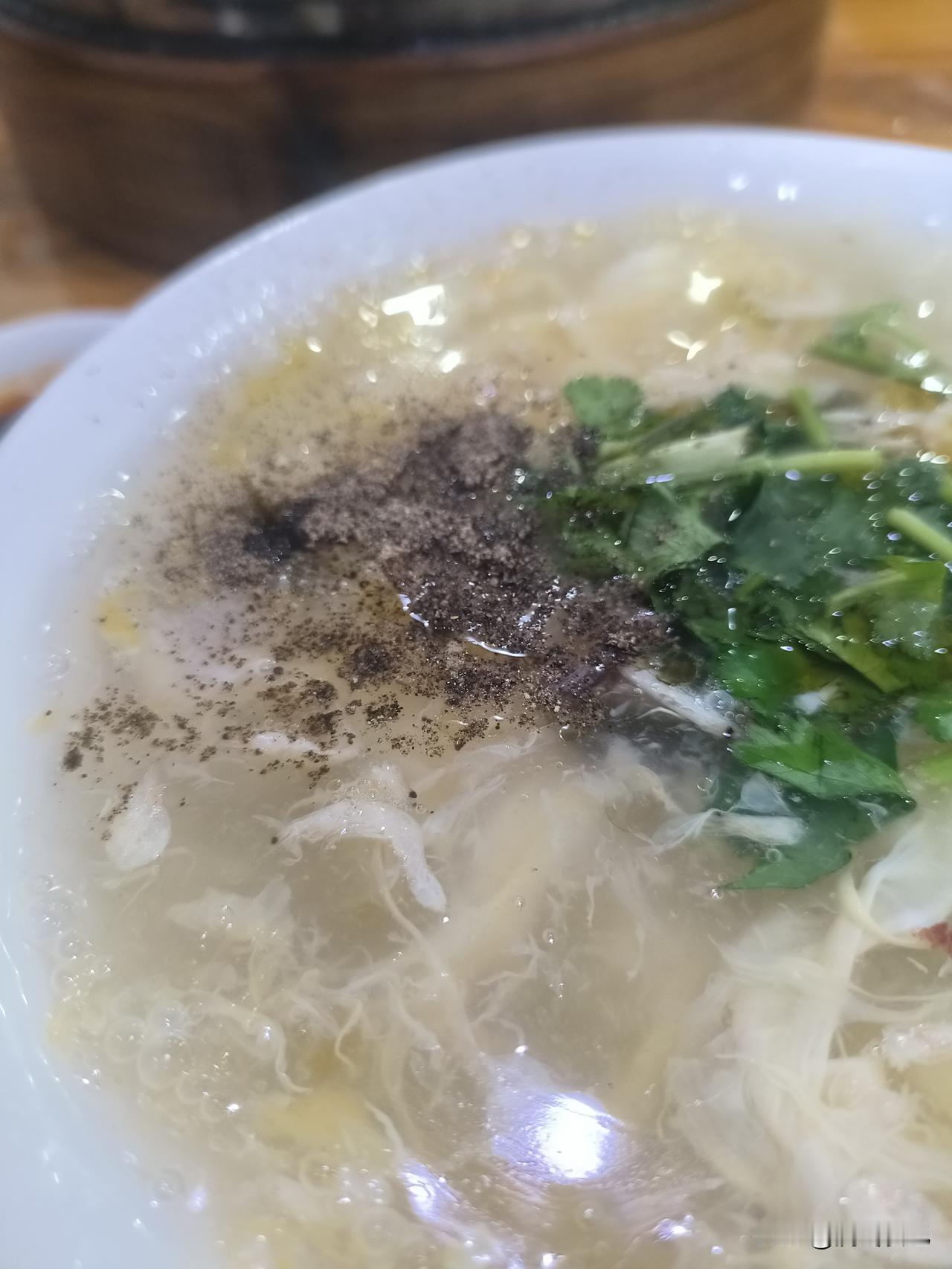 鸡肉糁汤清淡暖胃,汤头清爽不浑,蛋花滑嫩,带着一点点温和的胡椒香,喝下去从喉咙暖到肚子里,解腻又舒服。