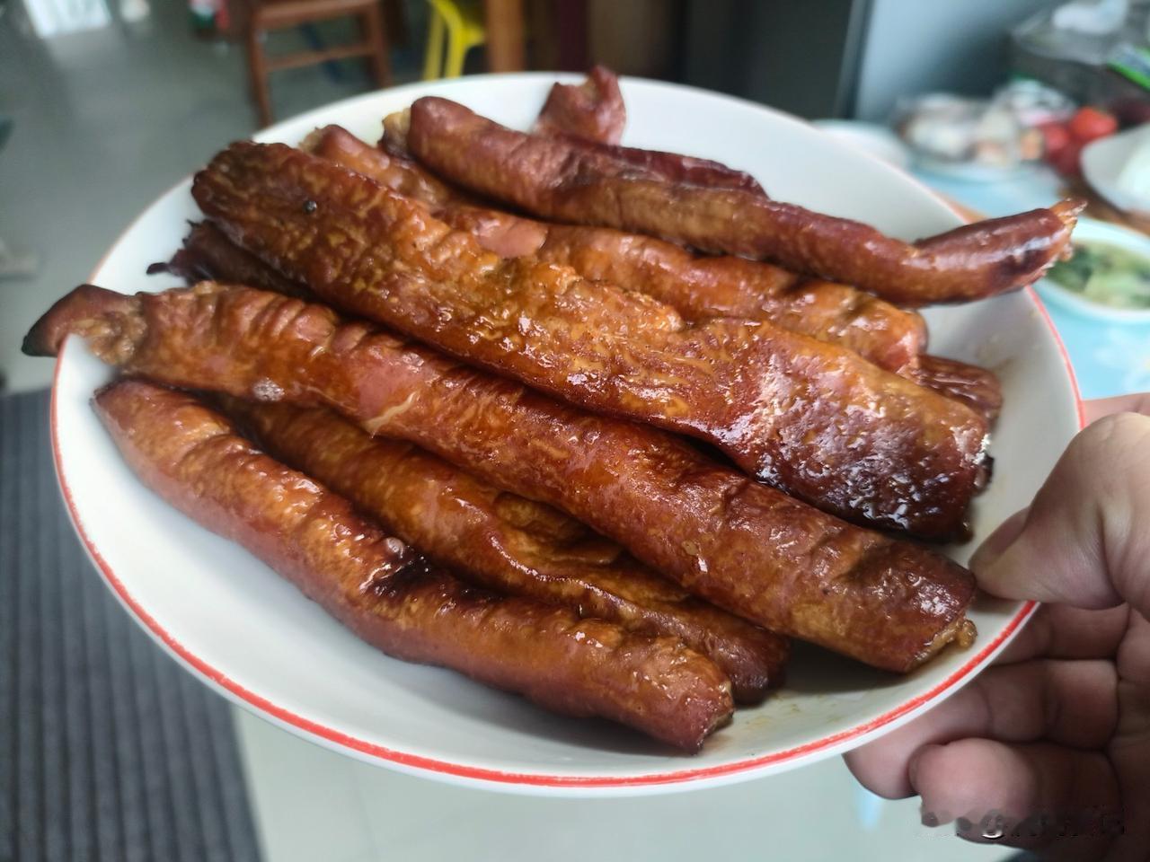 今天去超市发现大肠挺便宜,16块9一斤,那种处理的差不多的半成品。买了两斤多回来