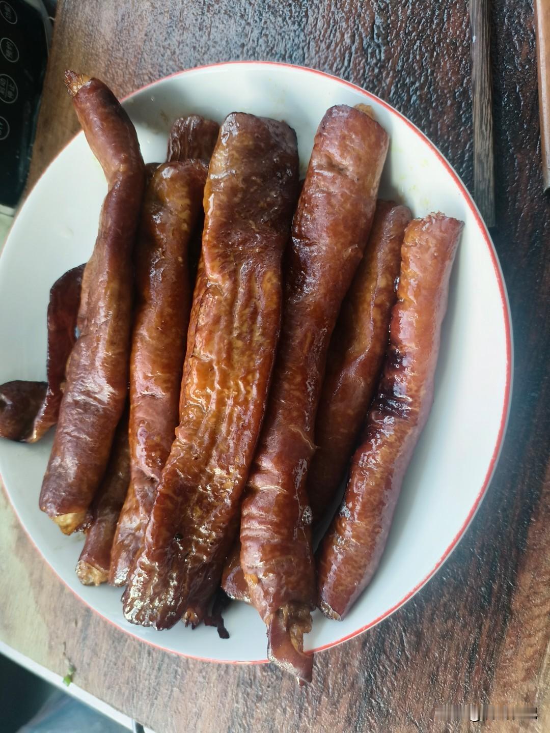 今天去超市发现大肠挺便宜,16块9一斤,那种处理的差不多的半成品。买了两斤多回来做熏大肠,也就是西安说的梆梆肉。
