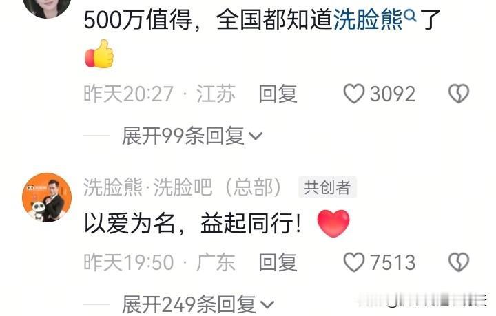 一次公益善行成就了三个人,500万的善款捐助让洗脸熊、张雪机车以及嫣然儿童医院都出了名。这比任何的广告宣传都有效,都深得民心。
