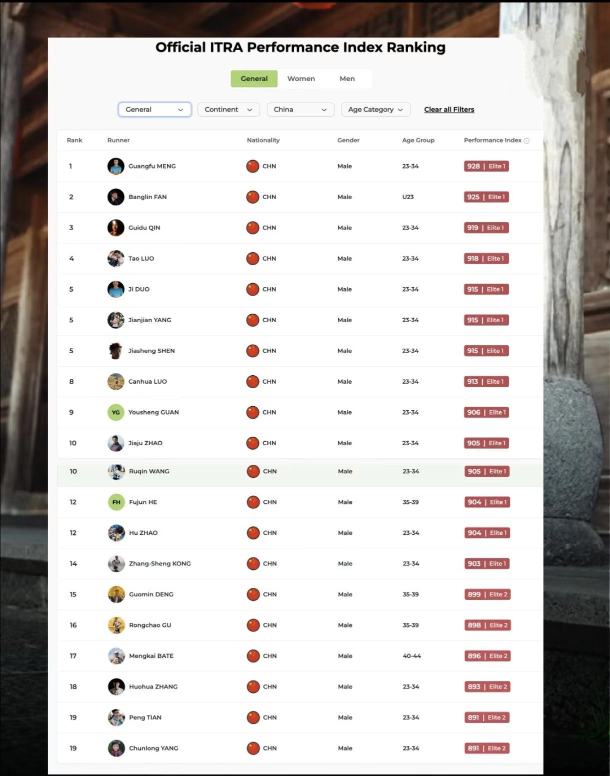 ITRA表现分891,单场919分,直接冲上中国第19!
