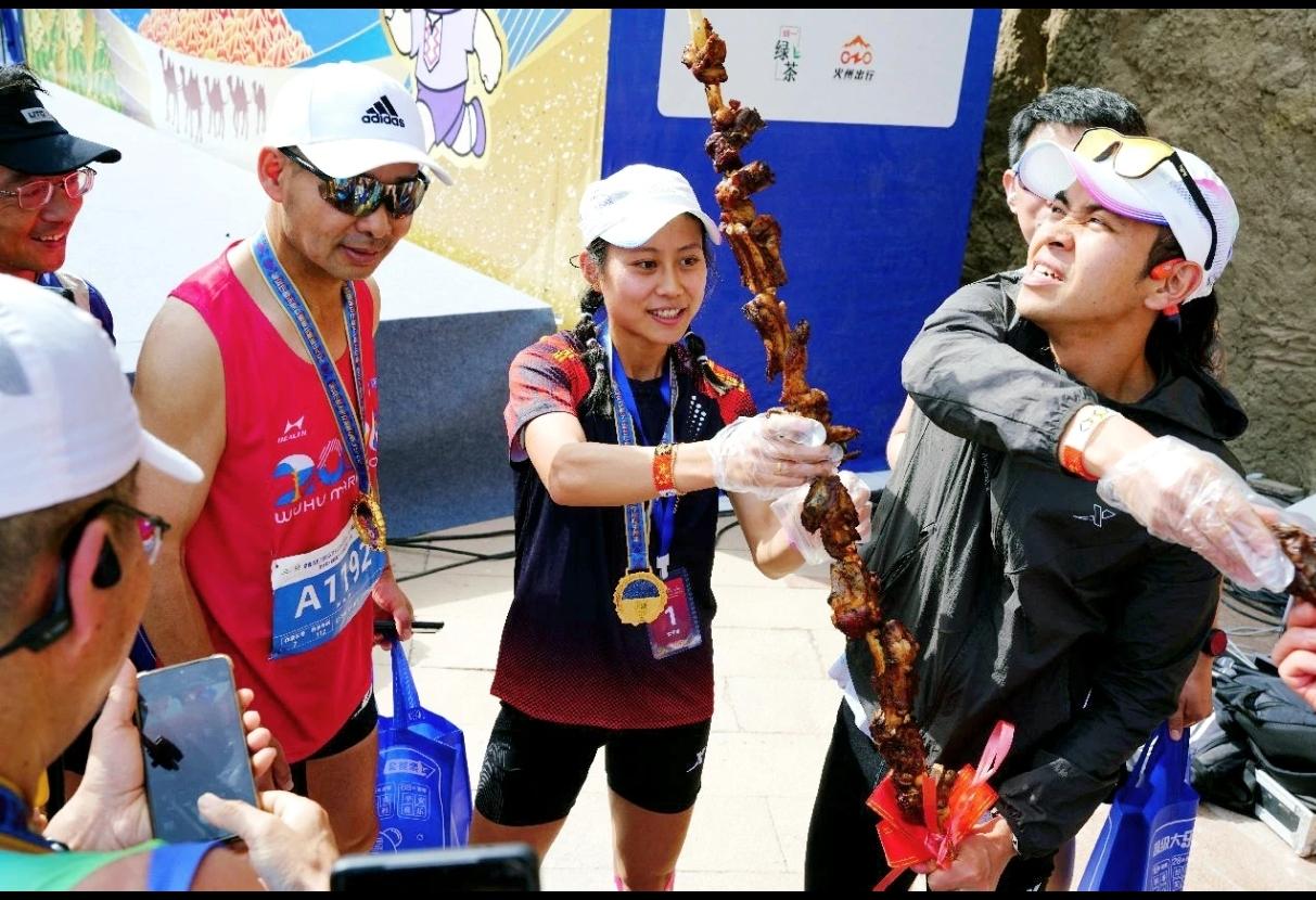 赛后解锁超硬核补给,1米5超大现烤羊肉串、清甜葡萄,圆满实现美食心愿。