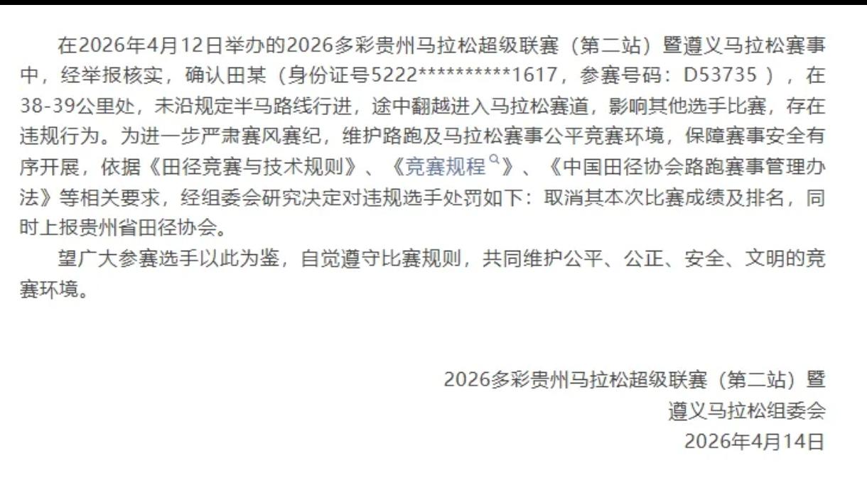 大快人心!遵义马拉松干扰丰配友冲刺者,重罚!