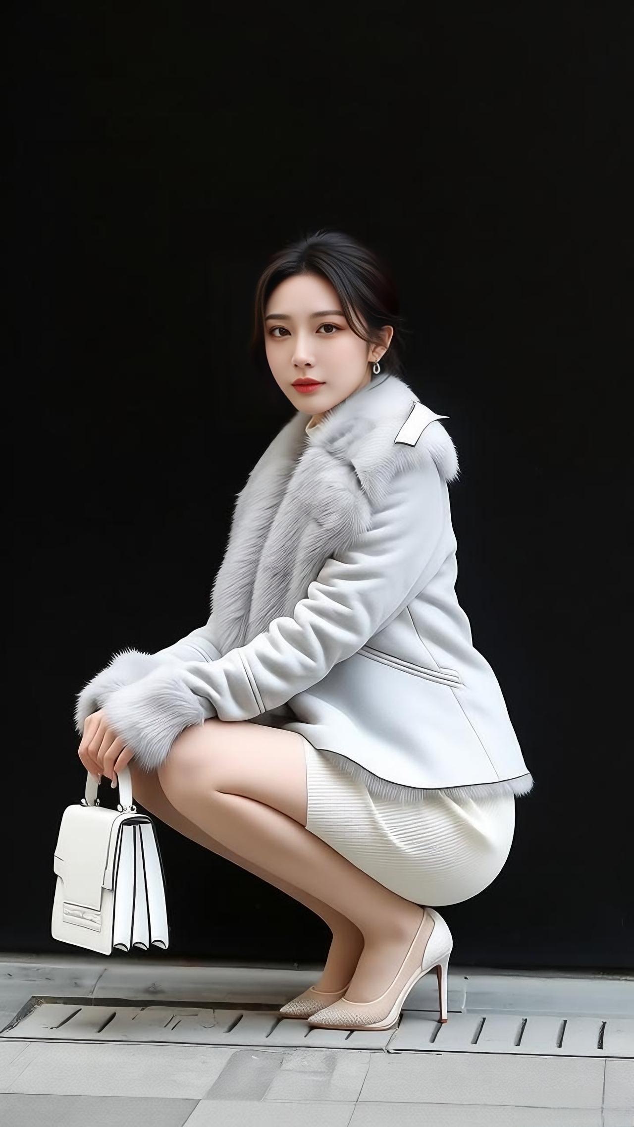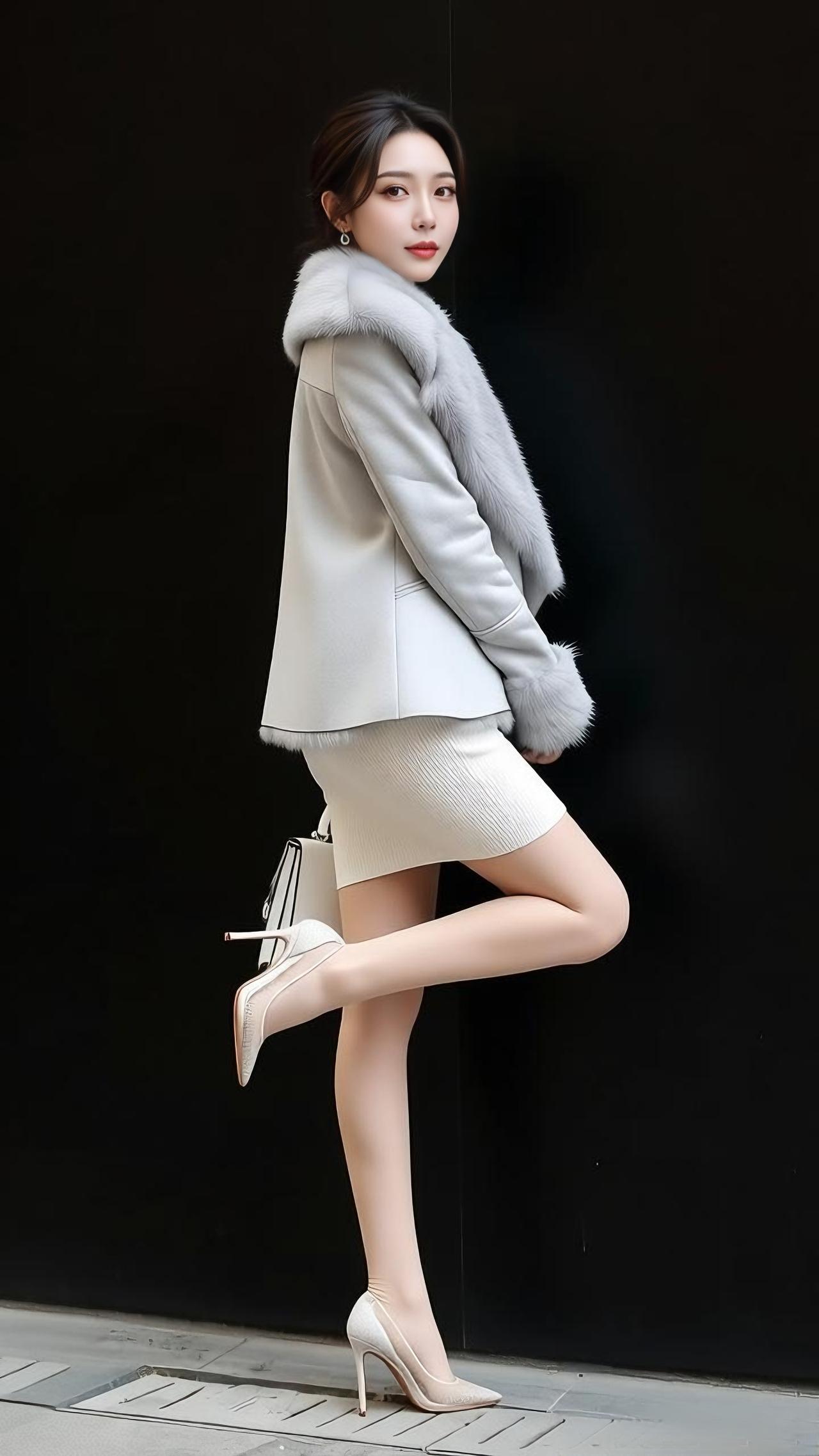 女人如何穿出含蓄的性感? 优雅气质穿搭,灰色皮草外套+白色连衣裙,搭配小方包,尽显时尚魅力!高清美图推荐 分享美女穿搭服饰 怎样完成气质风穿搭 氛围感出片穿搭