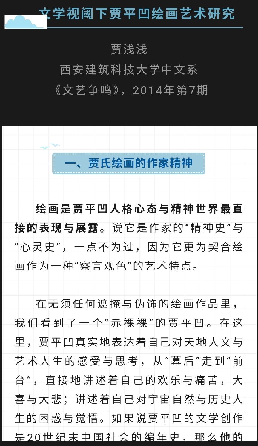 这次提到涉嫌抄袭的论文,其实是2014年贾浅浅写的论文《文学视阈下贾平凹绘画艺术研究》。后来被博主挖出该文多处引用别人文章但未注明出处。于是“抄袭”论文爆出,且引发热议。