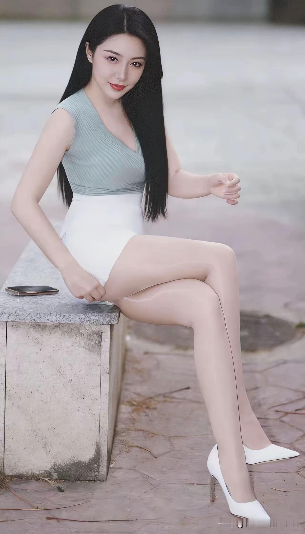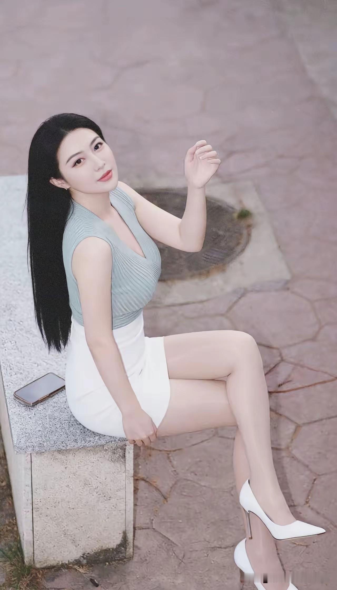 清新夏日穿搭,浅蓝色上衣+白色短裙,搭配白色高跟鞋,优雅迷人!