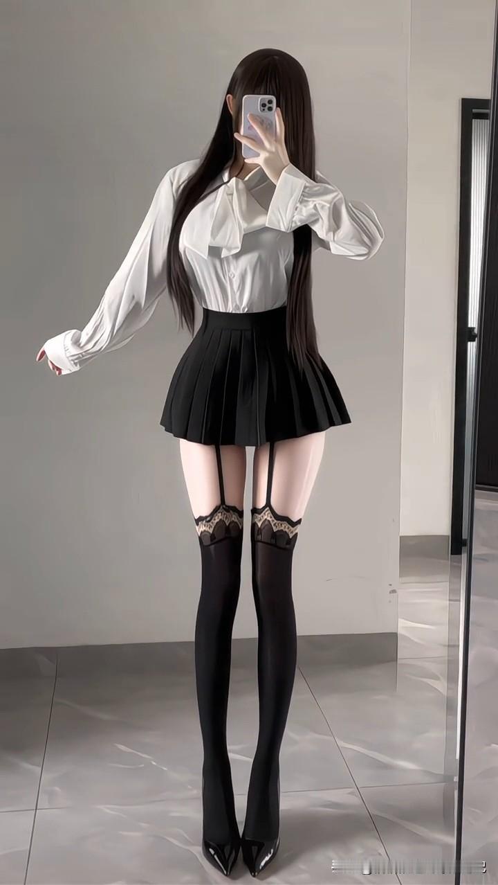 白衬衫配百褶裙是基础,灵魂全在这双蕾丝吊袜带过膝袜里✨ 清纯又带点小心机,视觉拉