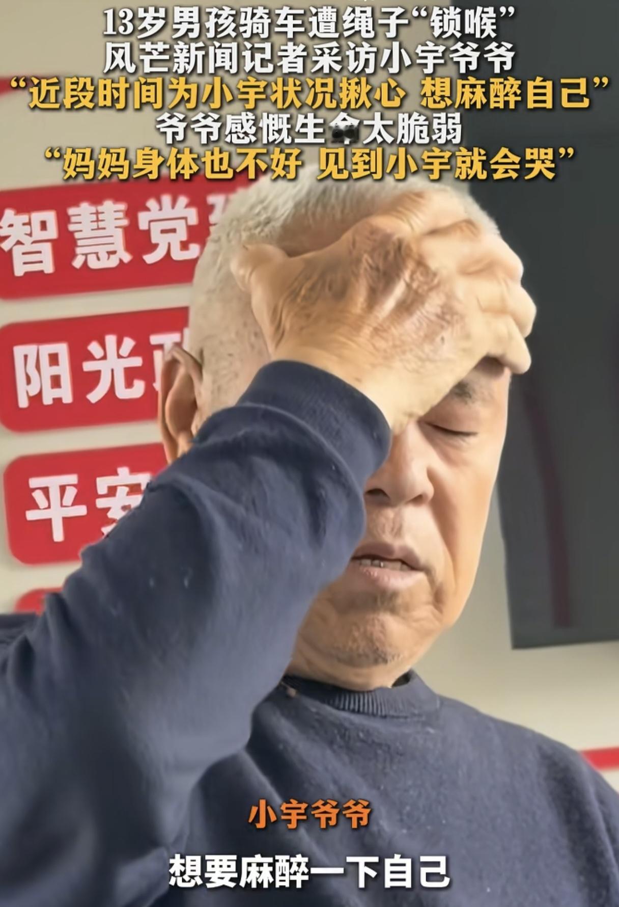 导致13岁男孩被绳割喉的栓绳者是一位62岁的老太,本以为男孩一家会很痛恨栓绳者,没想到男孩爷爷竟说:“栓绳者人还可以,这都是意外。”语气里没有一点责怪,真是善良的一家!