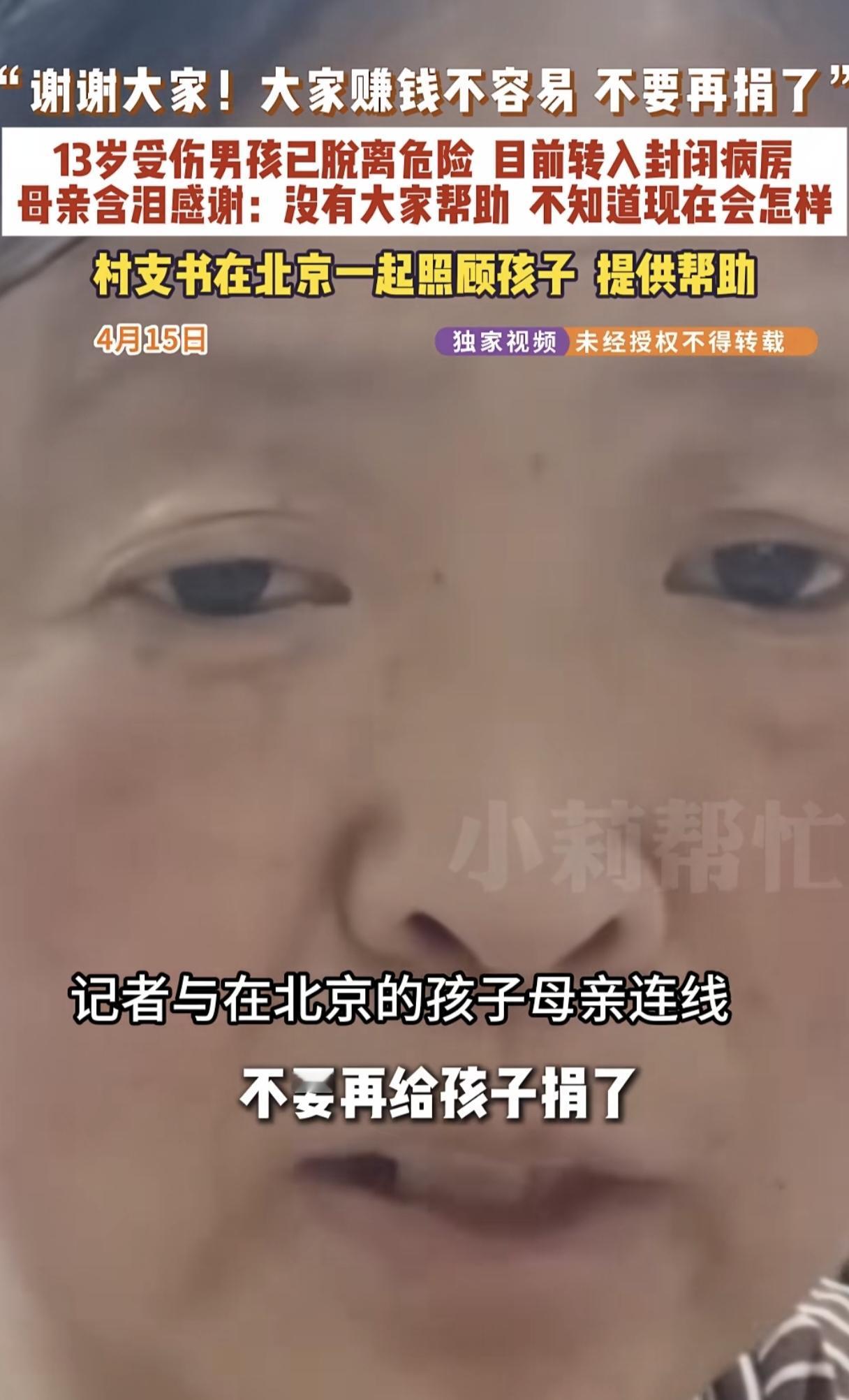 村支书连夜赶到北京,一直陪着家属跑前跑后。医院里的人生地不熟,有这么个熟人在,心里踏实些。治病资金很快落实到位,爱心捐款已足额凑齐。男孩母亲通过社交平台公开发声,恳请大家停止捐助,目前筹措的款项,足以支撑孩子后续治疗所需开支。