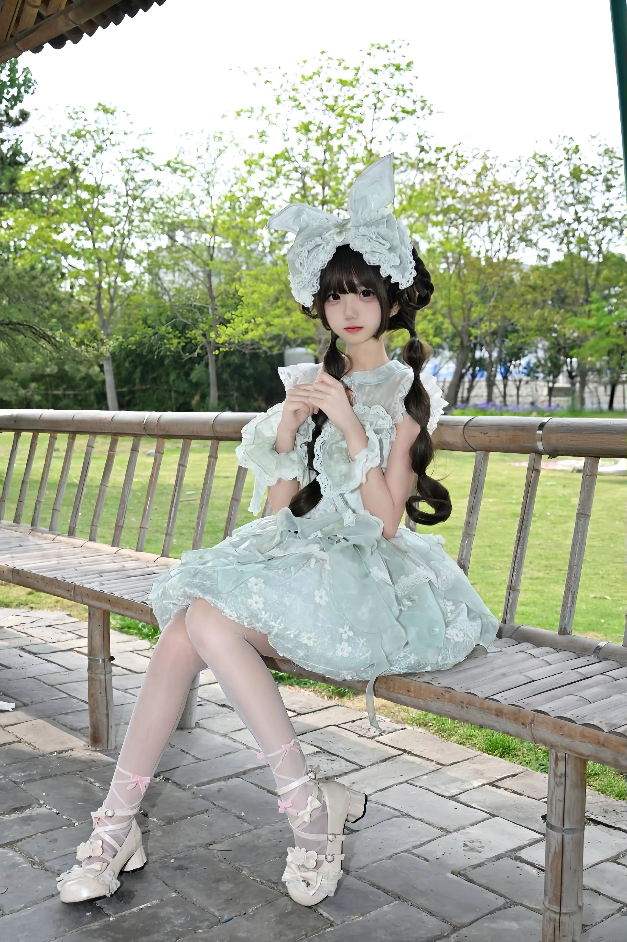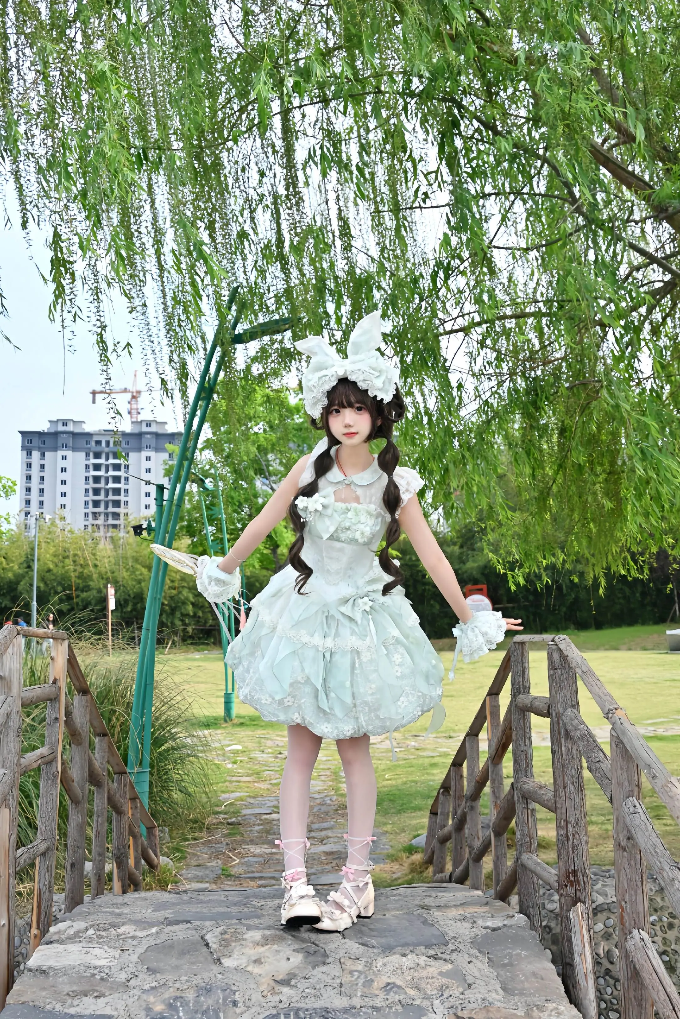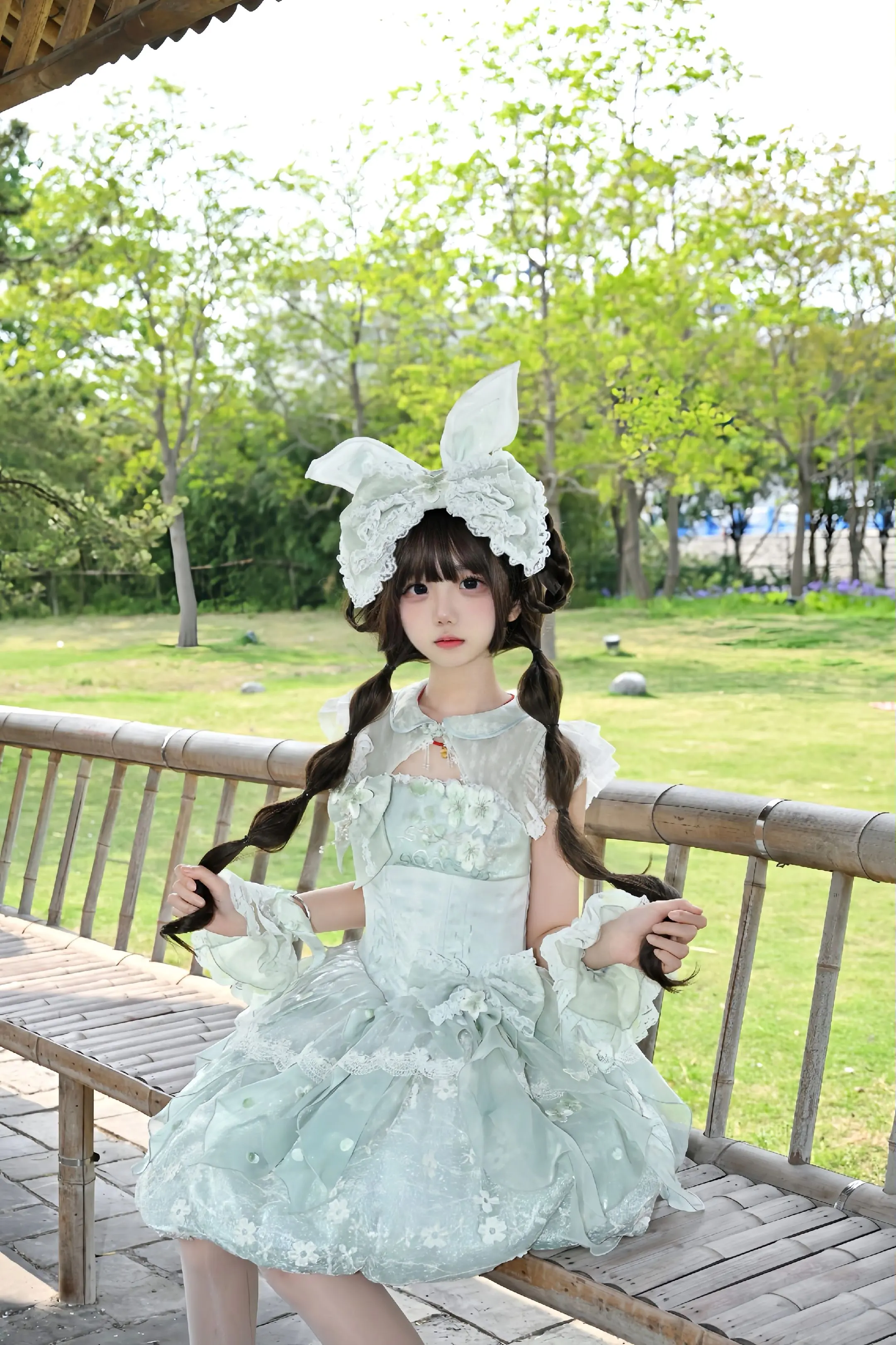 桃之夭夭花苞版 像一只梨花绿小兔子