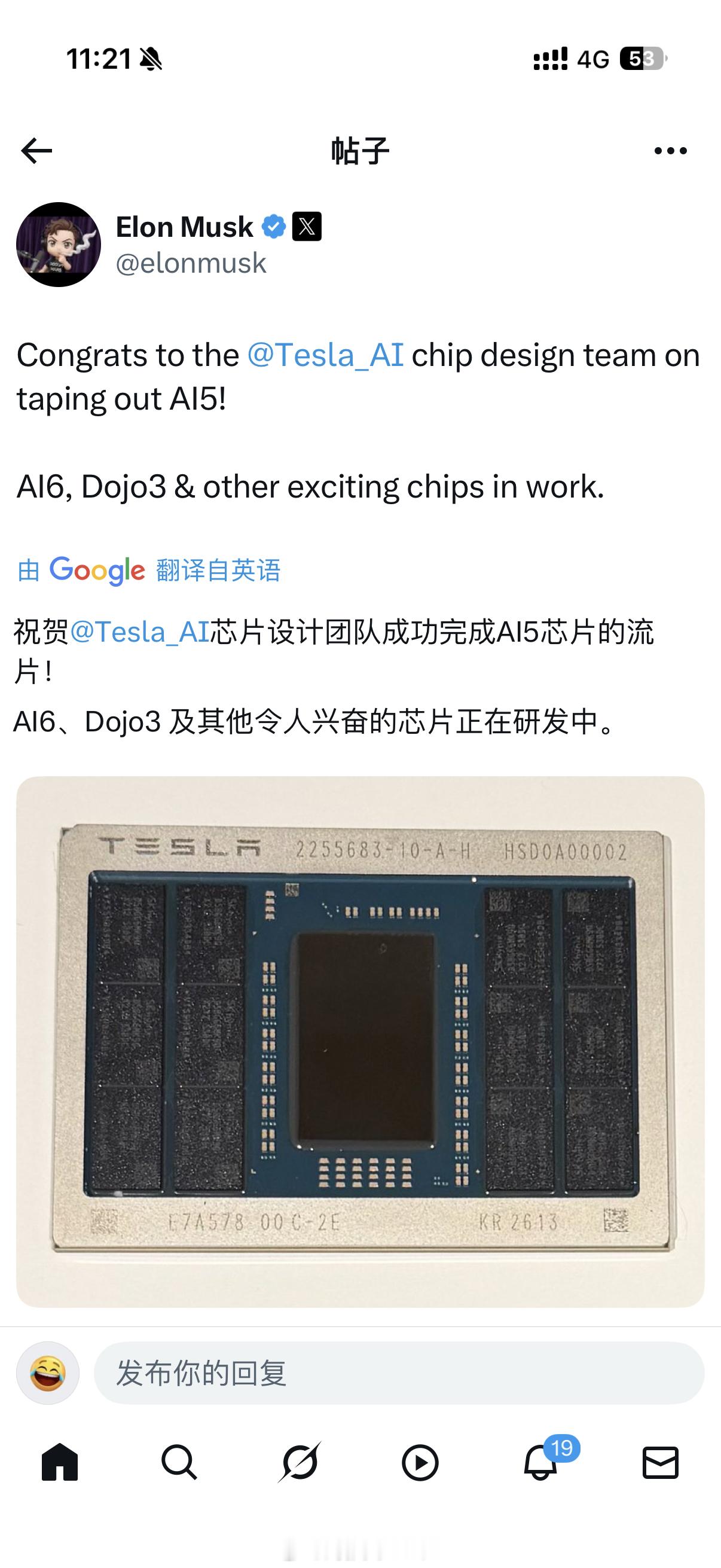 特斯拉的AI5芯片 流片成功了!老马特意感谢了,三星和TSC新能源大牛说