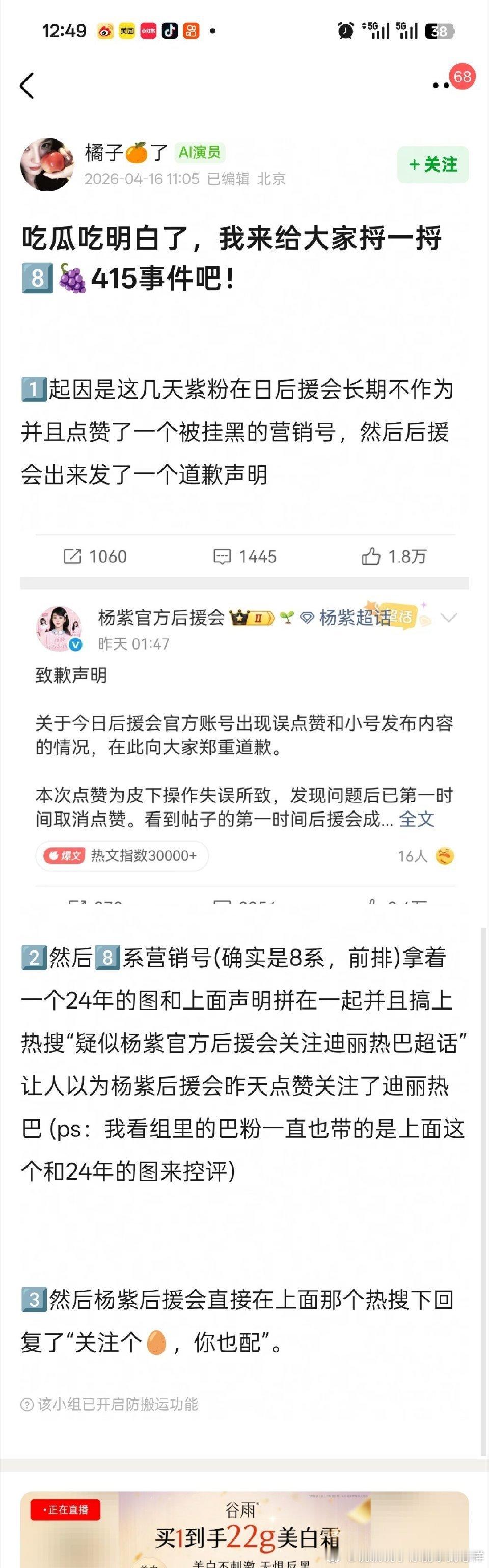 杨紫和热巴两家415事件始末居然是这样?我一直以为是杨紫后援会关注了热巴超话,感情是营销号移花接木……