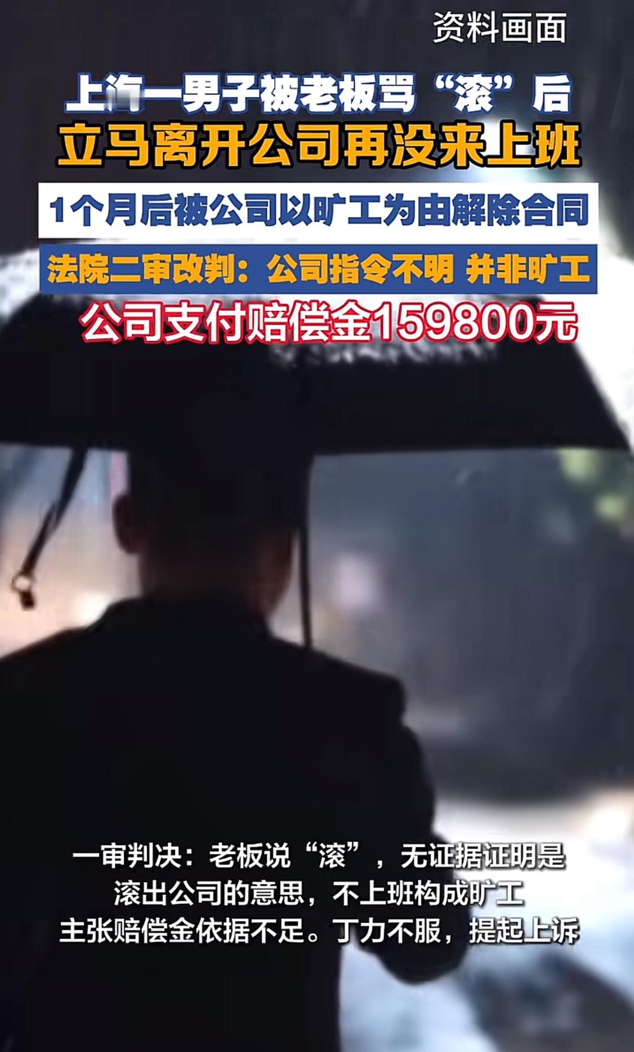 因为一个“滚”字,公司赔偿159800元,看了这个新闻,作为牛马解气吗? 上海