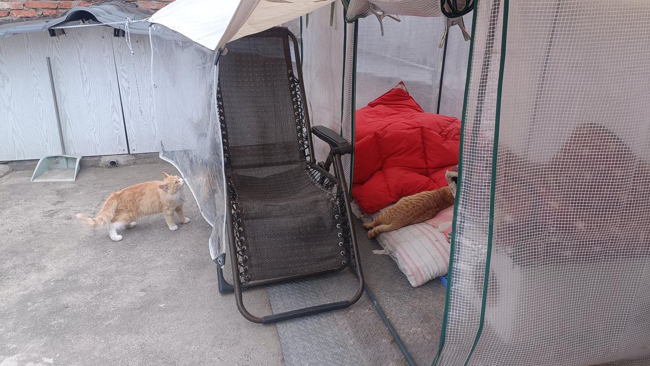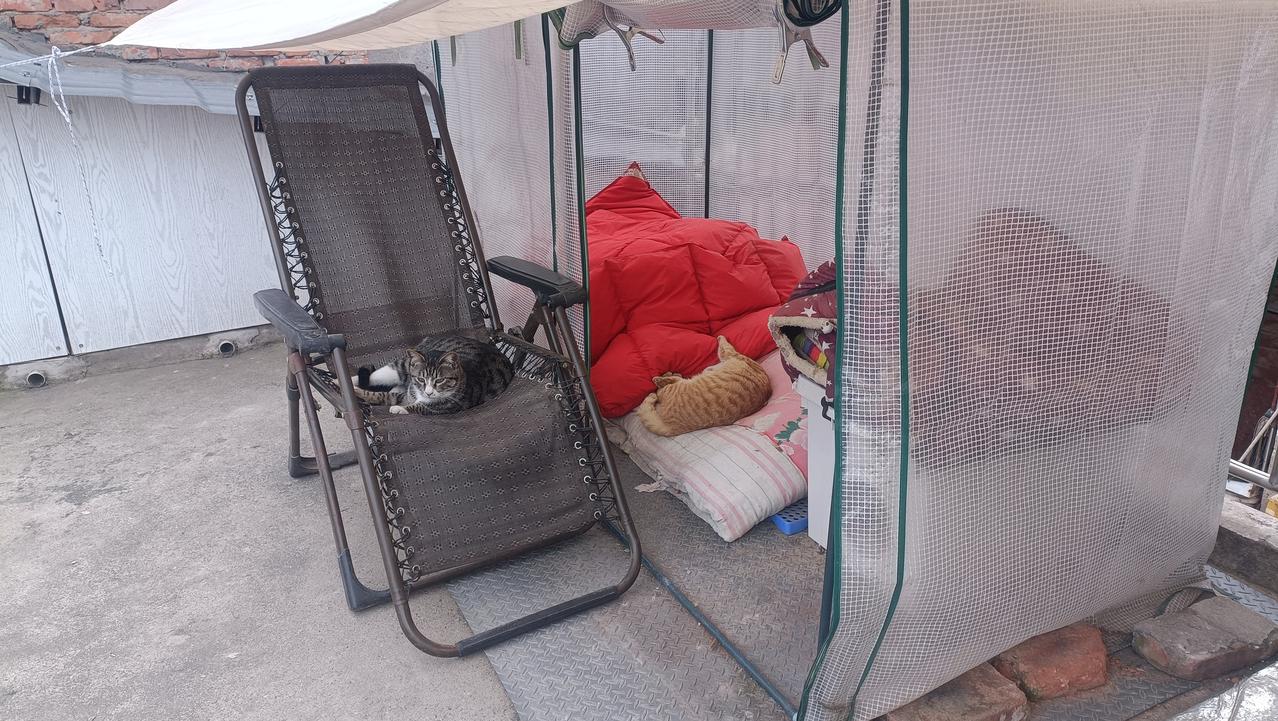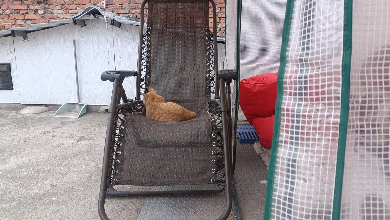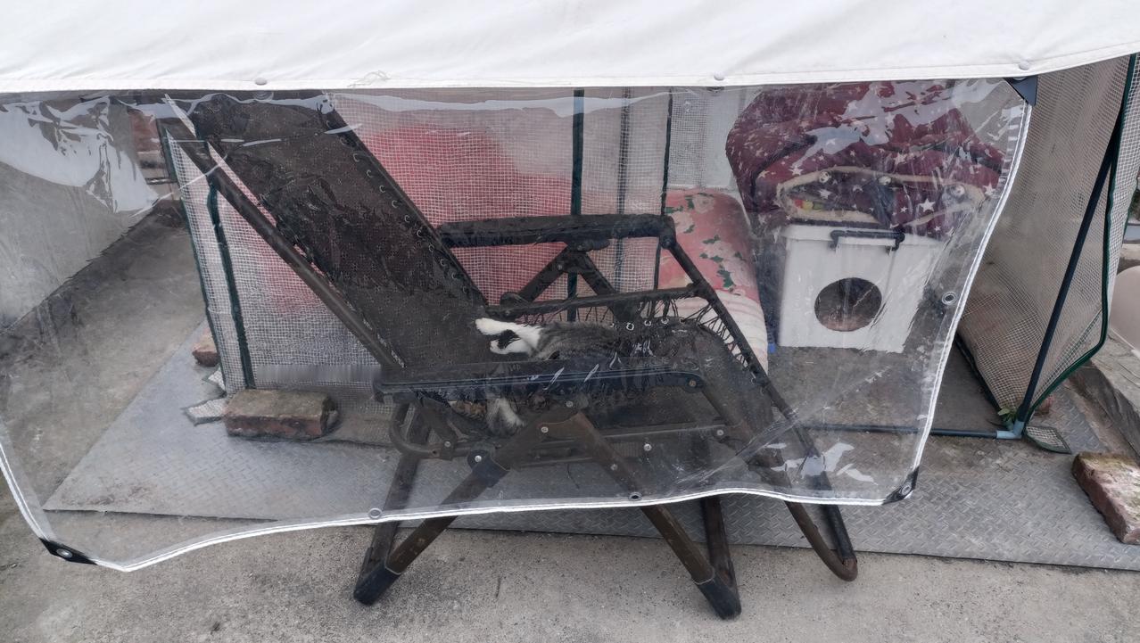 儿子下夜班,在垃圾桶旁边捡到一张被人丢弃的躺椅,欢天喜地的拿过来给我,让我放到平台上,累了可以躺在上面休息一会儿。我简单清理了一下躺椅搬到平台,试着在上面躺了一会儿,还挺舒适的,估计是太累了,我居然睡着了,还是调皮的小猫把我惊醒了。为了防止雨水把躺椅淋湿,我又在侧面挂了一块透明防雨布,很快就有小猫躺在上面了,它们看样子很是喜欢,这平台越来越像猫咪们的休闲娱乐场所了。流浪猫