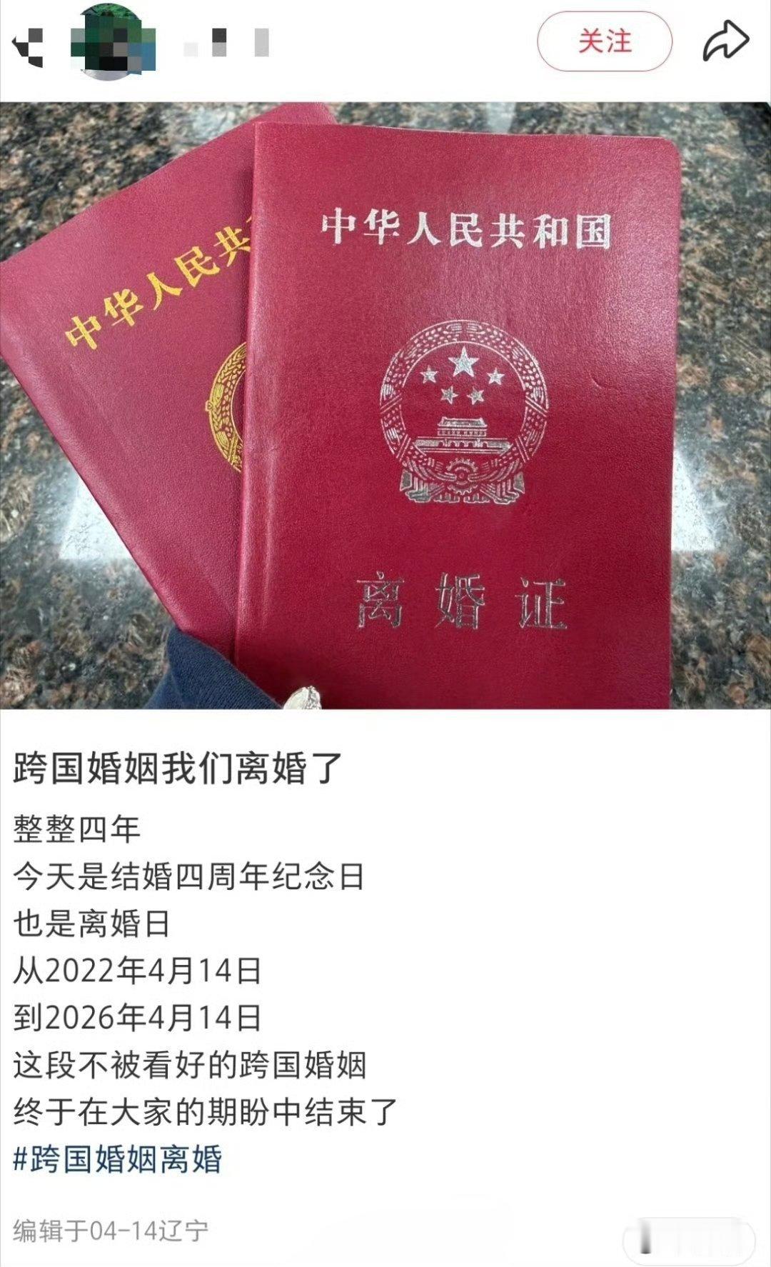 四年的跨国婚姻结束了……热点观点