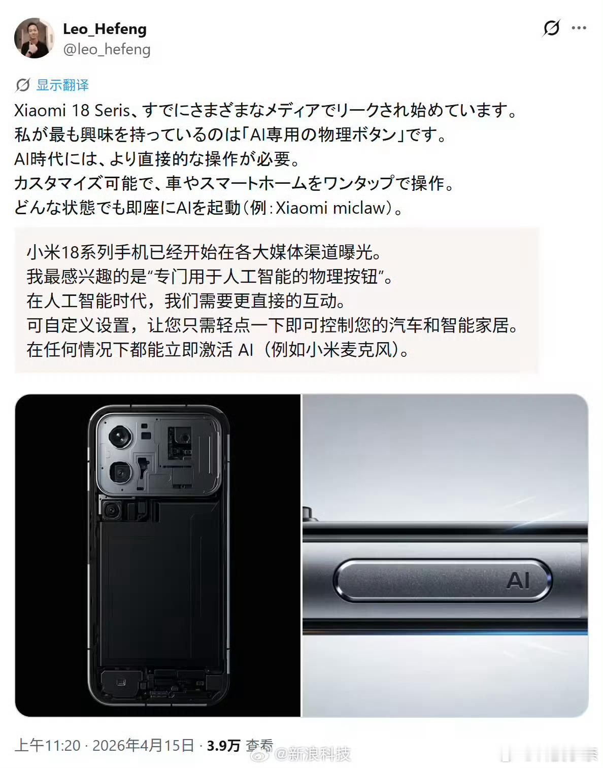 小米18 Pro增加实体AI按键!曝小米18Pro新增AI按钮