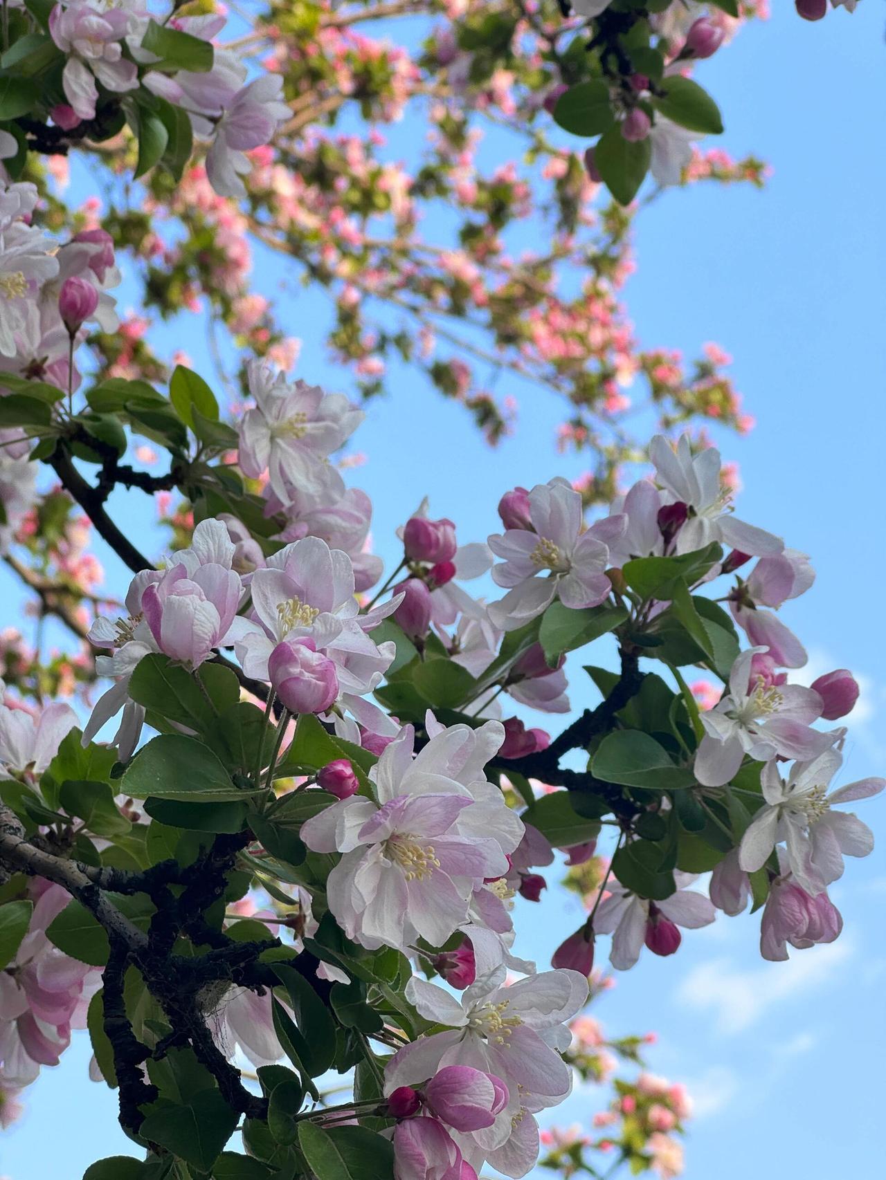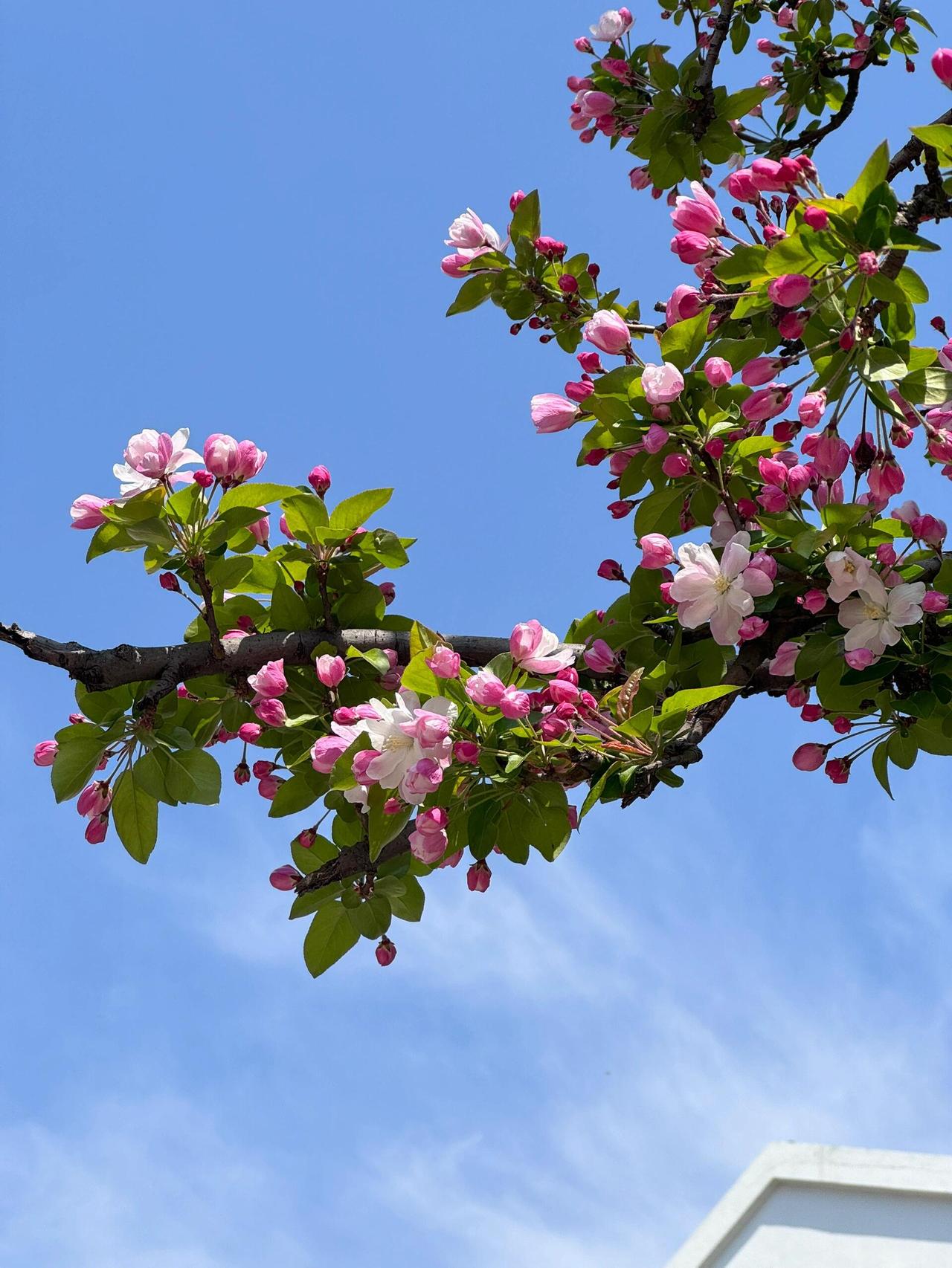又是一年海棠花盛开。粉白的花瓣层层叠叠,缀满枝头,像晨曦中轻柔的云霞,又像旧信笺上洇开的淡墨痕。微风拂过,几瓣花悄然旋落,落在青石小径上,落在路人的肩头,也落在时光静默的褶皱里。年年花相似,看花的人却总怀着一份新的怅然与欢喜——仿佛每一朵花开,都是岁月轻声的问候,提醒我们,美好从未远去。