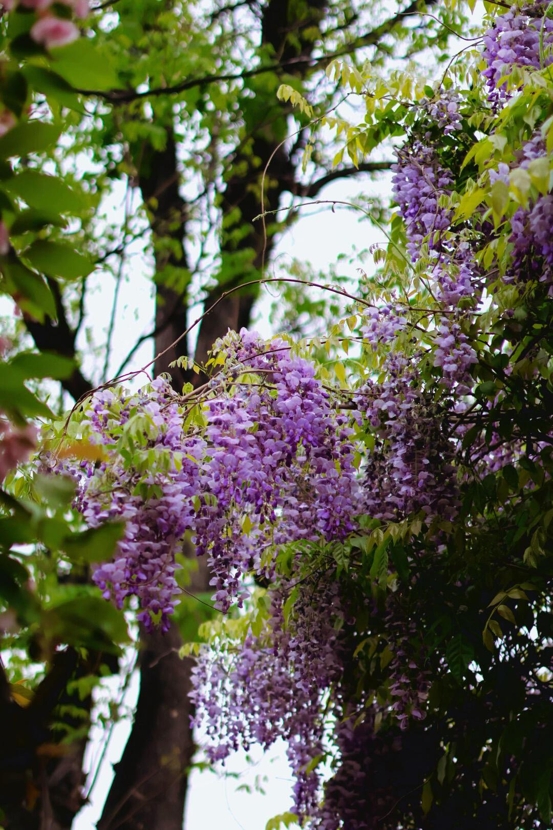 紫藤的香不是扑鼻的,是丝丝缕缕的,若有若无的。你特意去闻,它倒躲开了;你不理它,它又悄悄地围上来。这香气是凉的,带着些甜意,像是把春天的水含在嘴里。蜜蜂们是闻得见的,嗡嗡地忙着,在花穗间钻进钻出,沾了一身的金粉。