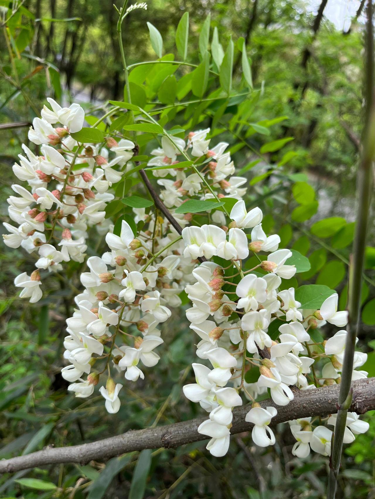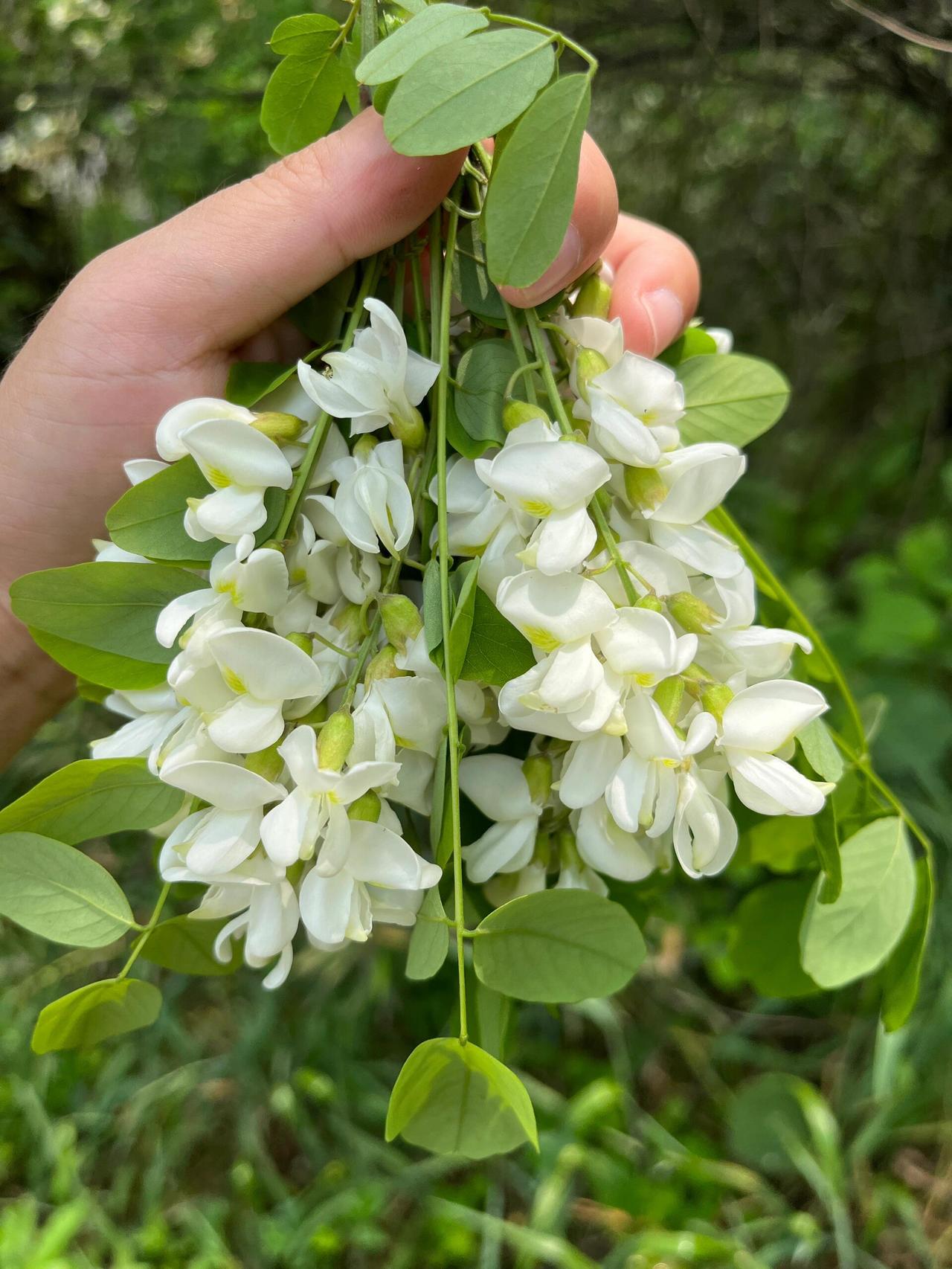 我接过竹竿,对着低处的一枝轻轻一勾,花串簌簌落下来,有几朵飘到脸上,凉丝丝的。摘一把塞嘴里,花瓣薄得像纸,轻轻一抿就化了,甜味慢慢渗出来,是那种清清爽爽的甜,不腻,像嚼着春天刚酿的蜜。
