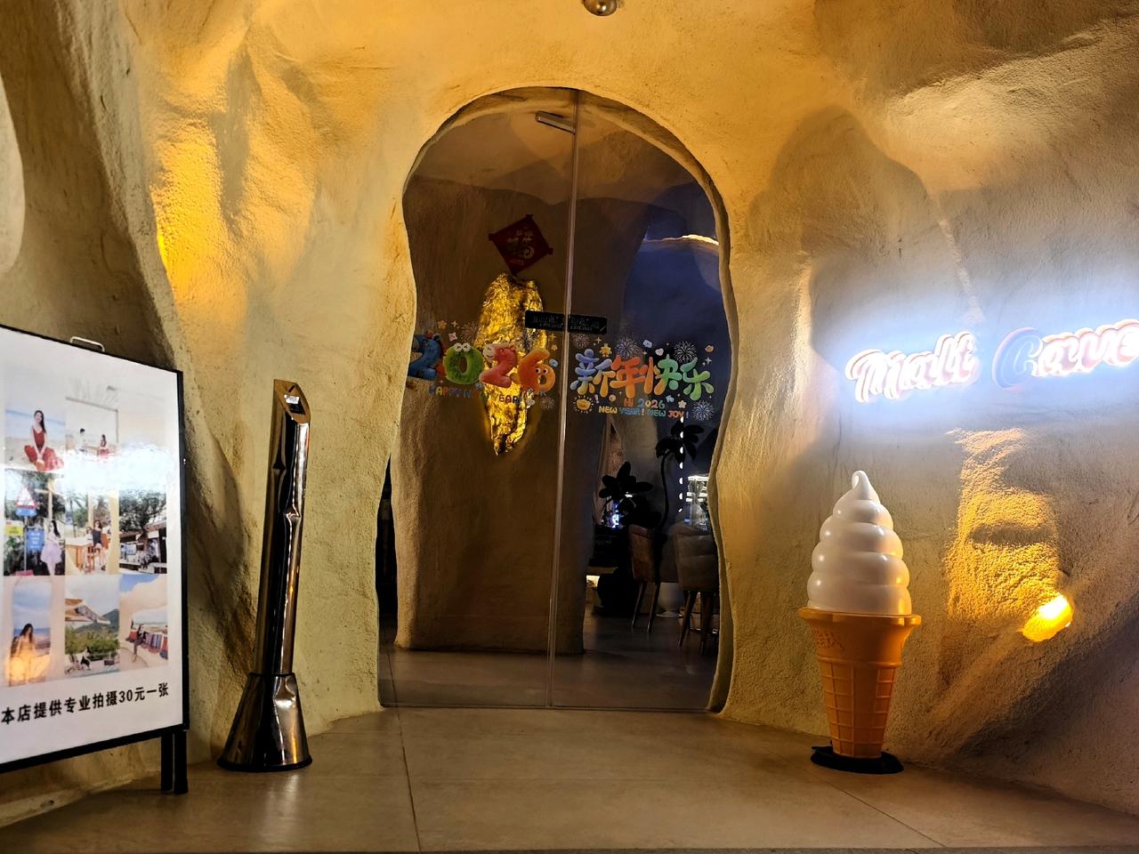 夜色漫过日月湾,小桥边洞穴建筑的麦芽咖啡,在开阔的海岸风光与充满活力的冲浪文化氛围中,成为一处极具辨识度的视觉焦点与感官体验空间。