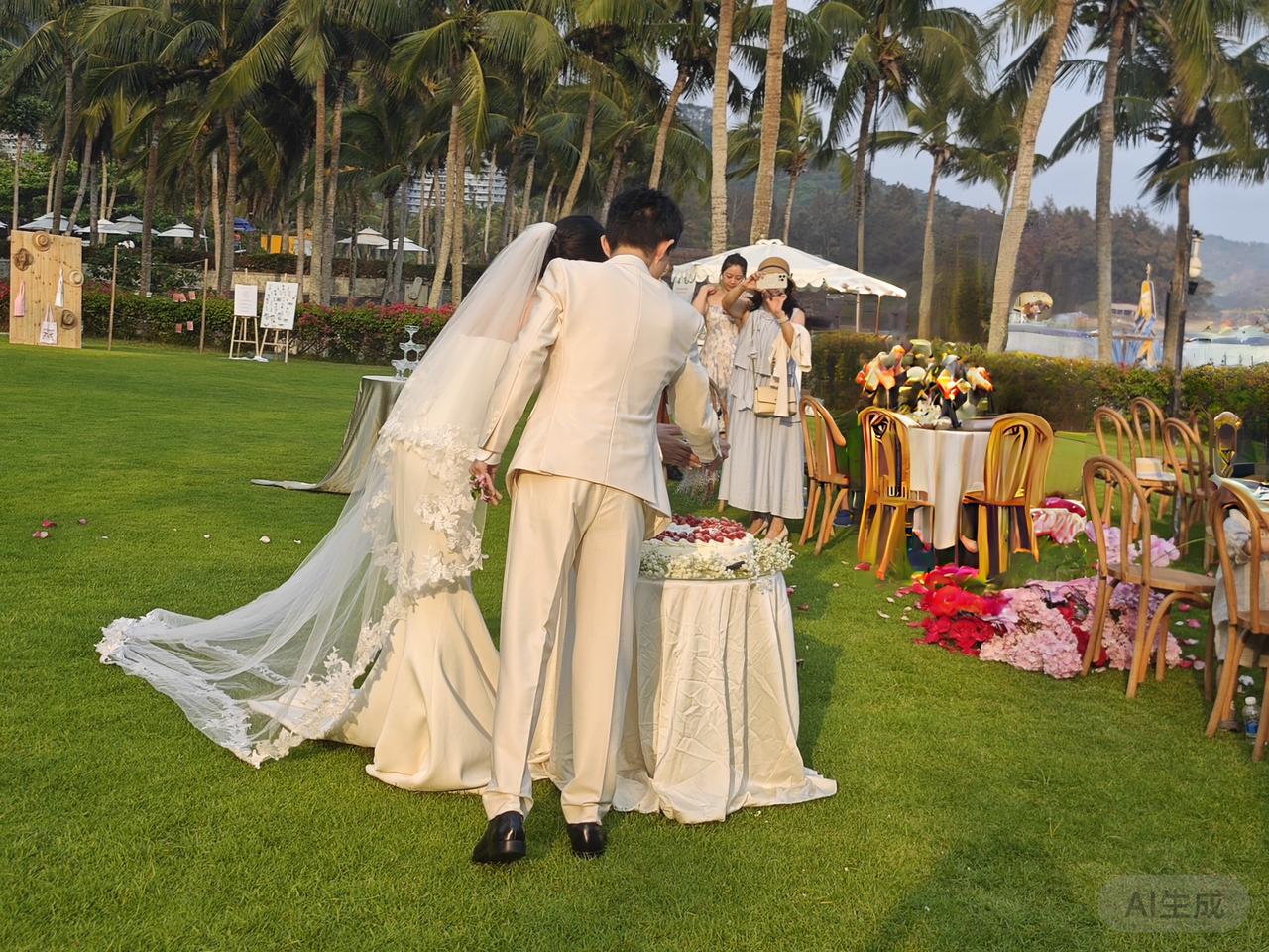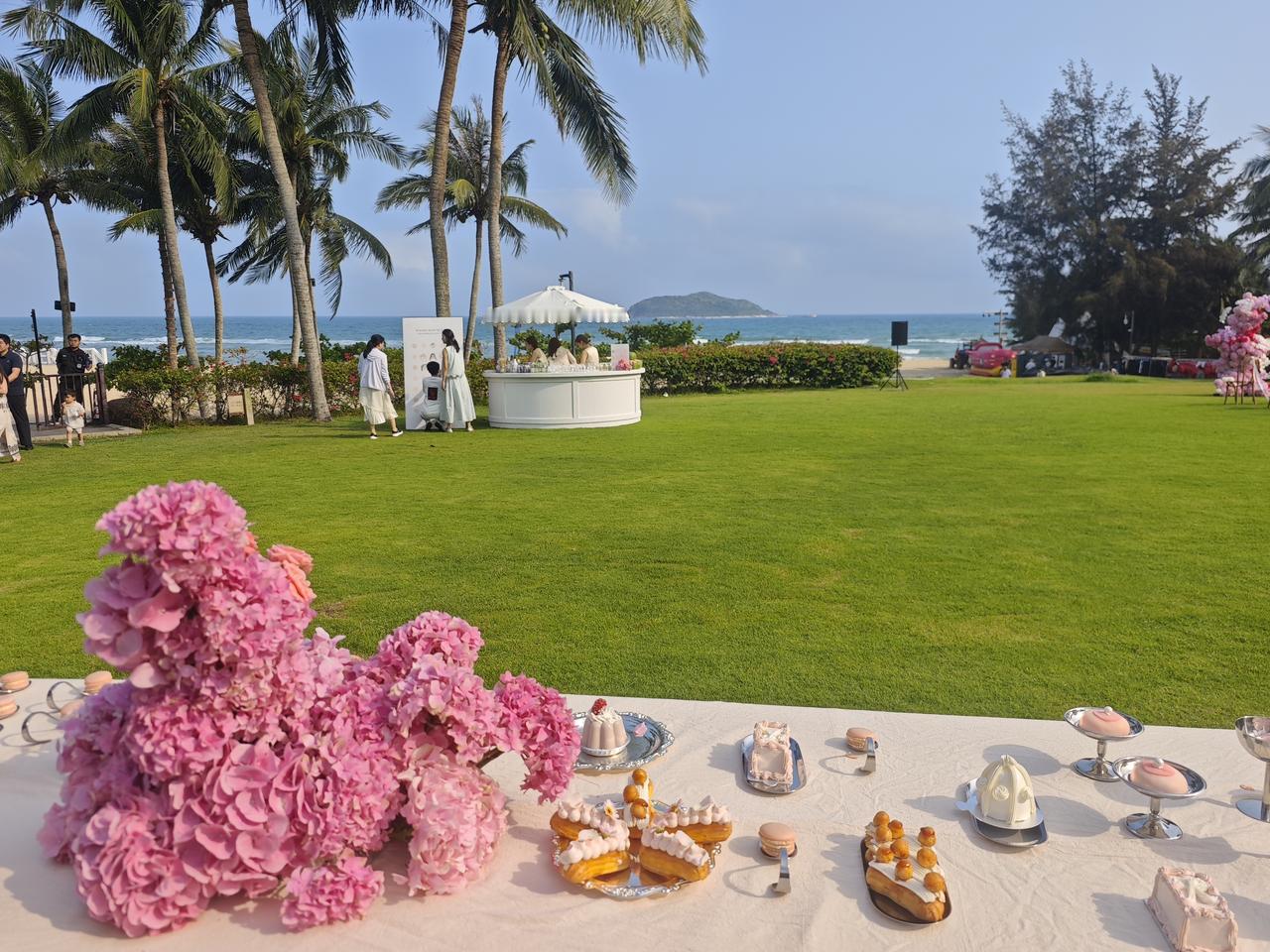 昨天在石梅湾,遇见一个草坪婚礼现场。